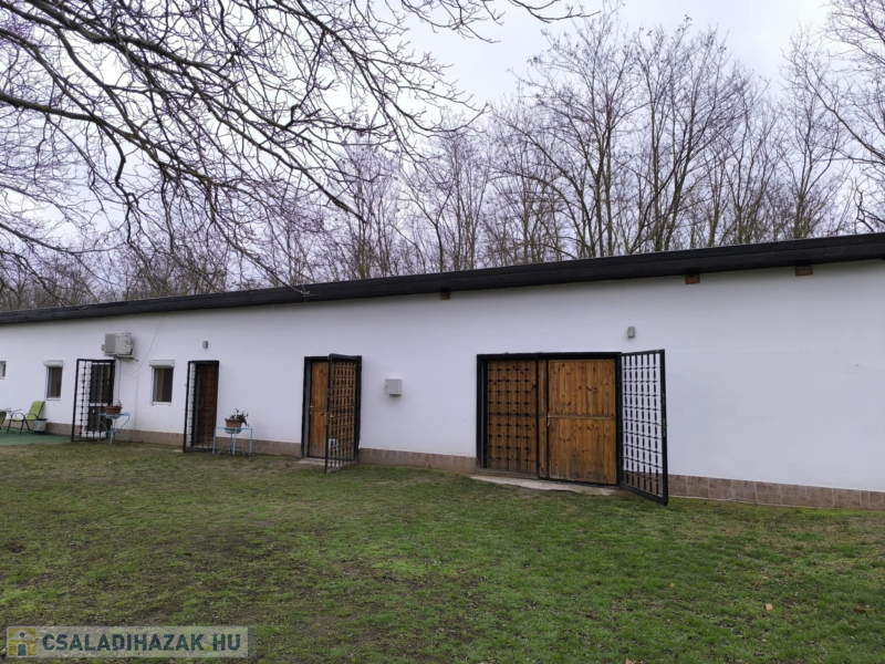 2. épület – 2010-ben épült, modern tégla házAmerikai konyhás nappali, 3 hálószoba, fürdő + WC, 43,71 nmKözéprészén külön bejáratú nagy hálószoba 23,4 nm, hátul tágas műhely 73,7 nm – minimális átalakítással akár harmadik lakássá alakítható.Fűtés: klíma + kandalló, meleg víz: bojler.Tető: cseréplemez.