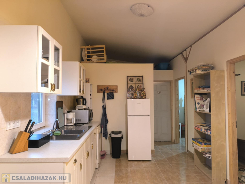 További extrák: garázs, több tároló, pince, kerti bútorok és eszközök. A szennyvíz elvezetéséről két darab 8 m³-es emésztő gondoskodik. A vízellátást fúrt kút biztosítja.