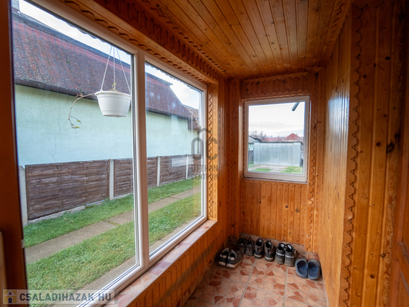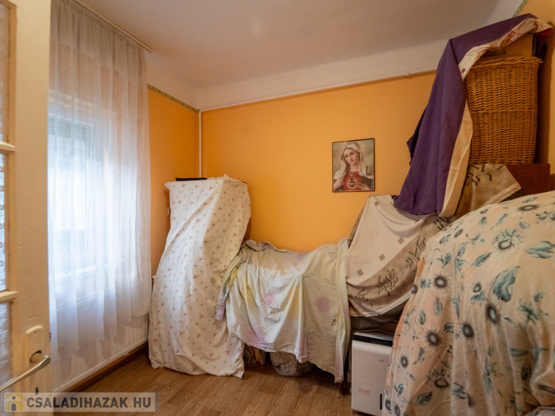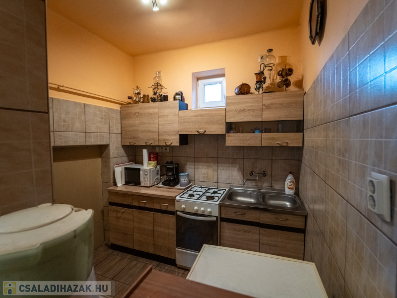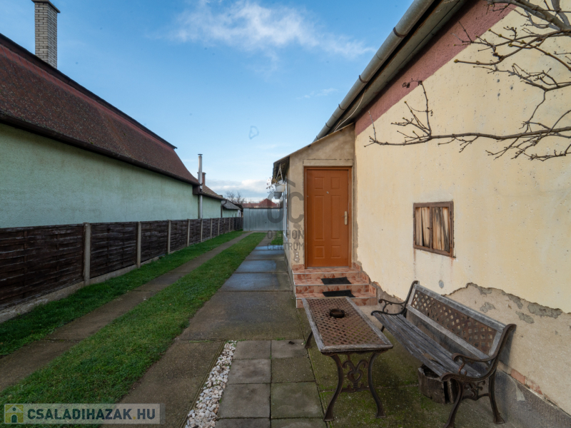 A 68,8 m²-es, jól beosztott házban zárt előtér (+3,84 m²), folyosó, 2 és fél szoba, konyha és étkező kapott helyet. A fürdőszoba frissen, 4 éve lett felújítva, a nyílászárók és az elektromos vezetékek is cserélve lettek. Télen gázfűtés és vegyes tüzelésű kazán gondoskodik a melegről, nyáron pedig a vastag falak miatt nincs szükség klímára. A ház folytatásában egy 18+18 m²-es melléképület található, valamint egy 20 m²-es gyári lemezgarázs is a kényelmet szolgálja.