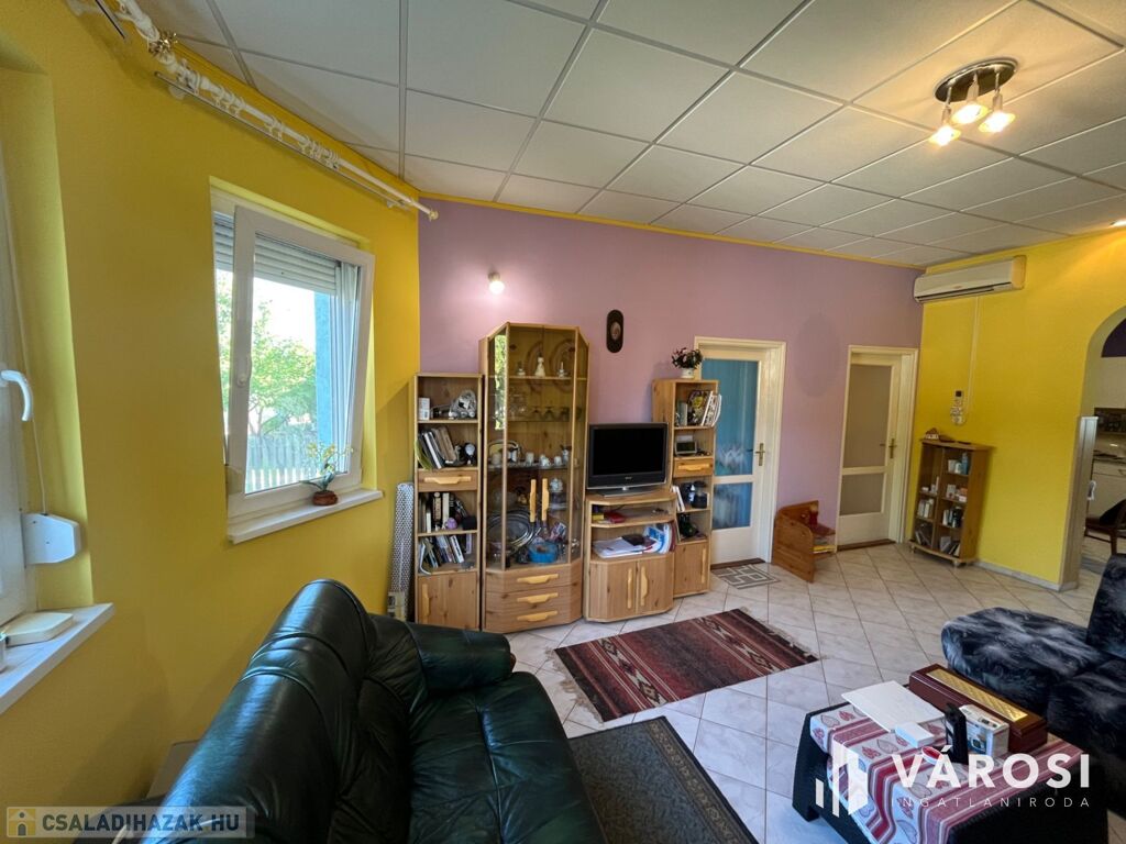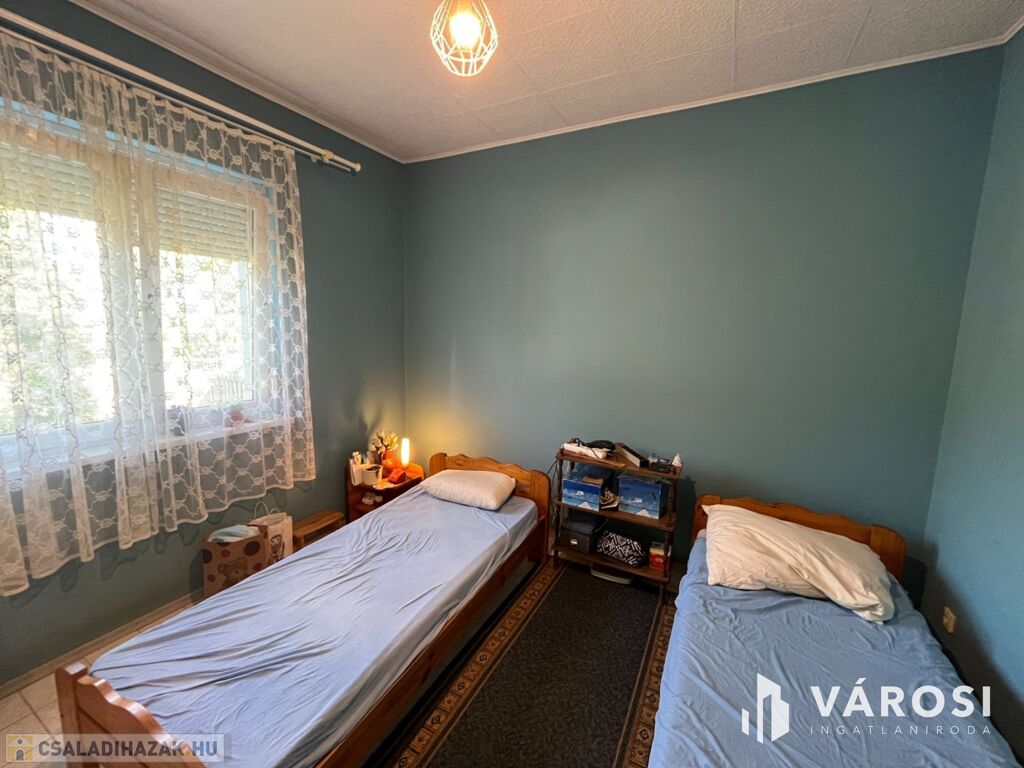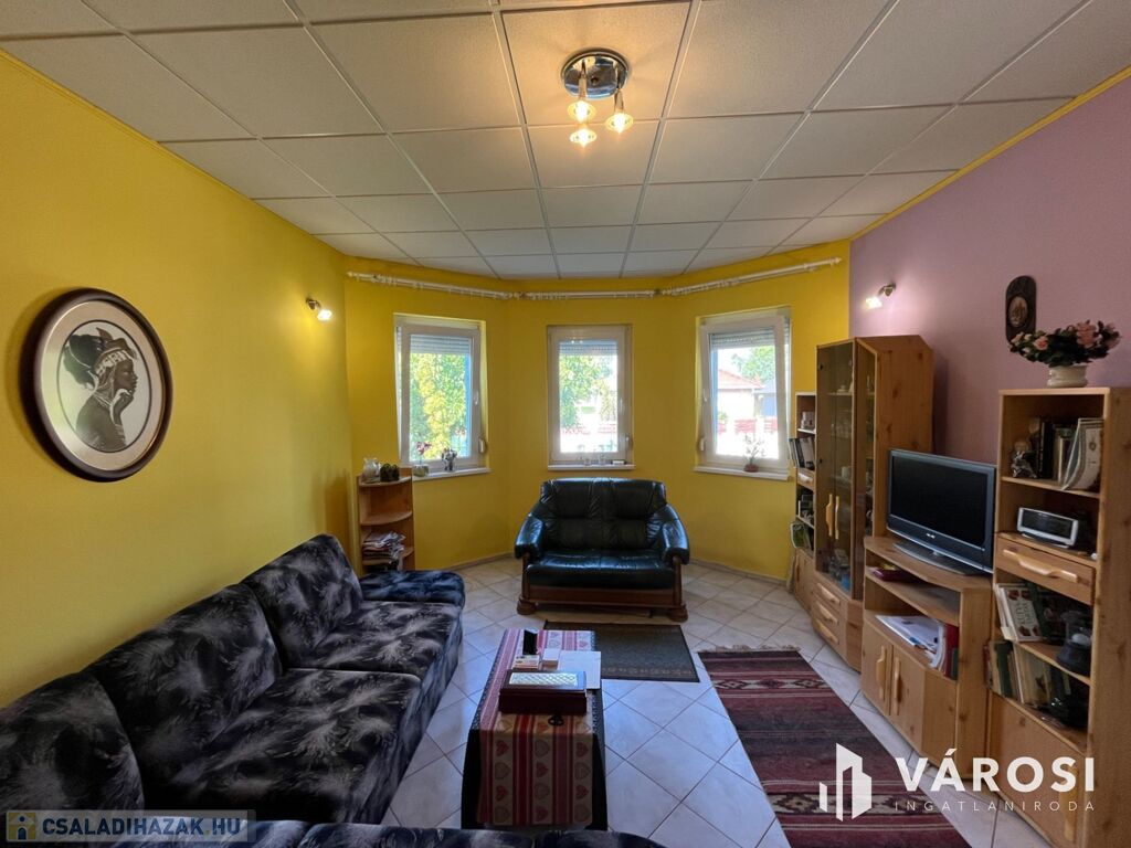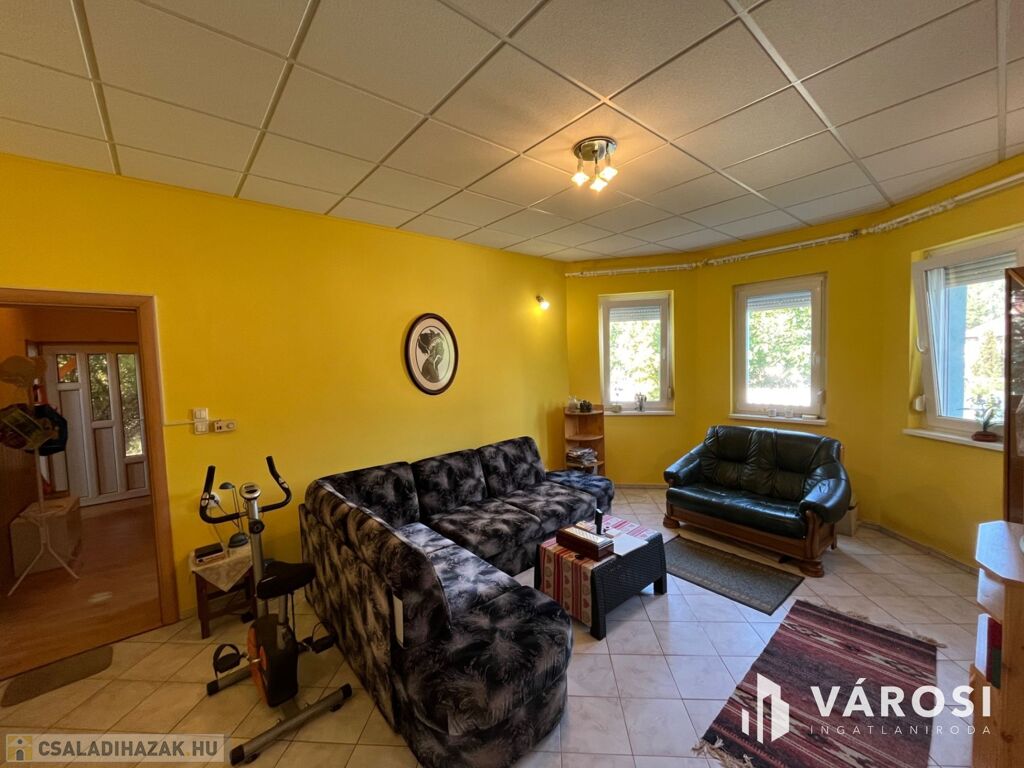 Fedezze fel ezt a kiváló állapotú, 95 m²-es lakóterületű, minden igényt kielégítő otthont, amely 1100 m²-es, parkosított telken helyezkedik el. Az ingatlan három tágas szobával, egy világos nappalival, külön fürdőszobával és WC-vel rendelkezik, melyek tökéletes kényelmet biztosítanak a mindennapokban.