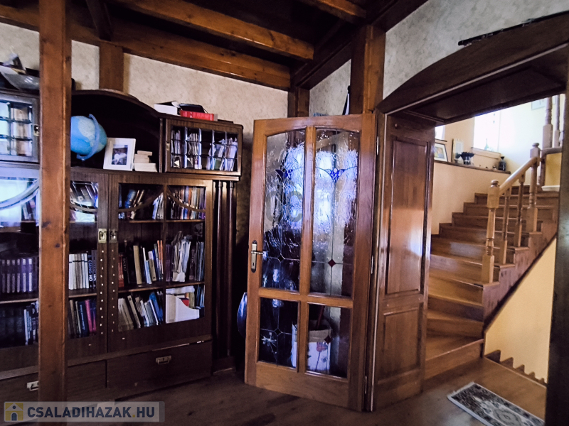 A ház 250 négyzetméteres, négy tágas szobája, társalgója, galériája különleges hangulatot nyújt.