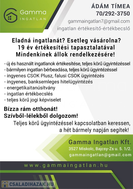 Miskolc Komlóstető városrész kedvelt részén, egy 43,5 m2 alapterületű téglaépítésű 1 szobás felújított állapotú sorházi ingatlan kertrésszel eladó!
