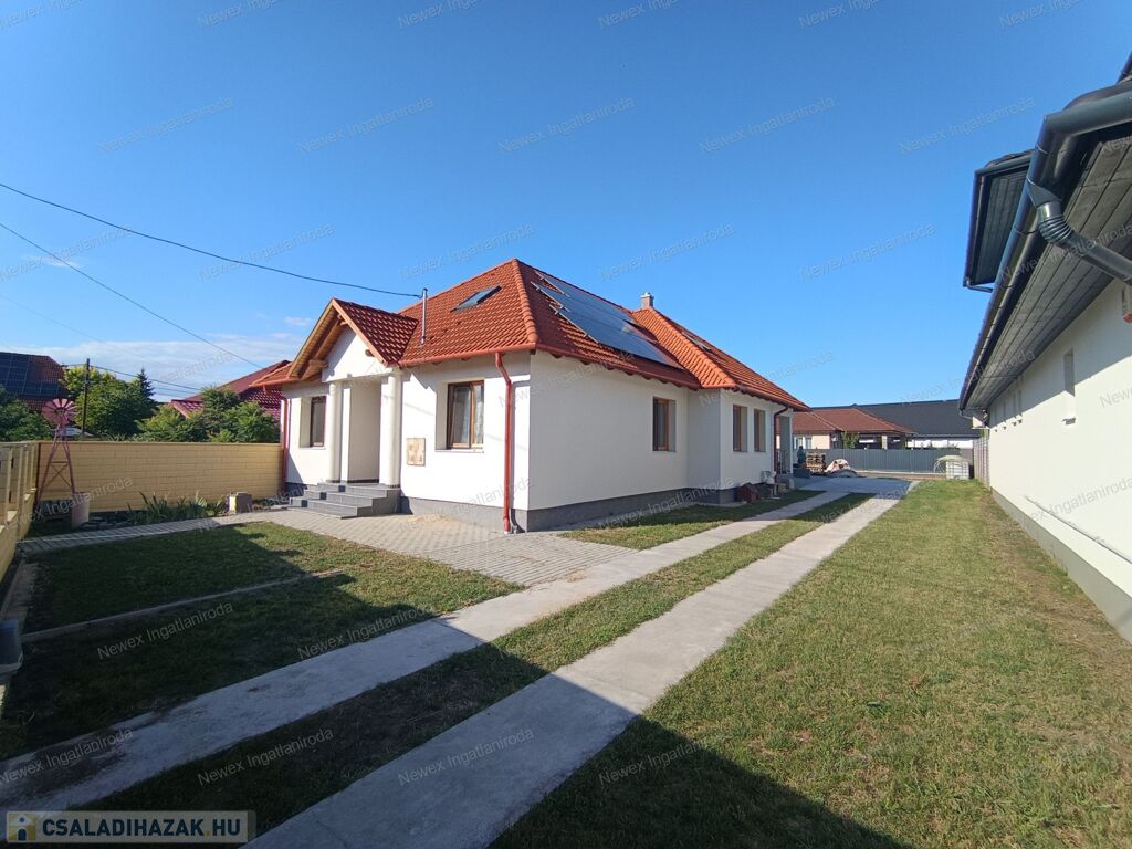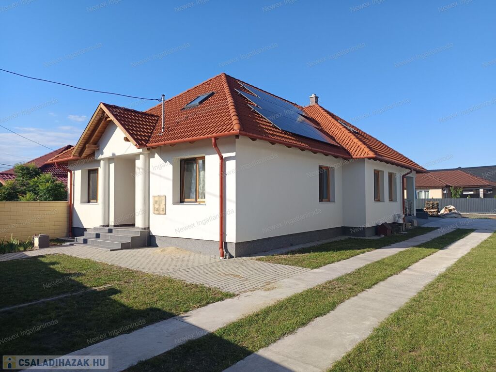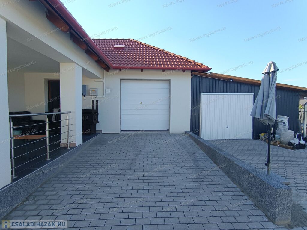 Az ingatlan kényelmét szolgálja az elektromos kapu, a motoros garázskapu és a 6 kW-os napelemes rendszer, amely gazdaságossá és környezettudatossá teszi a mindennapokat.