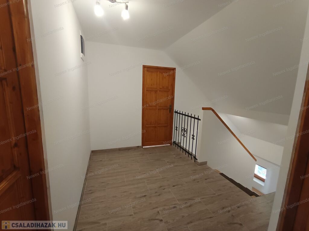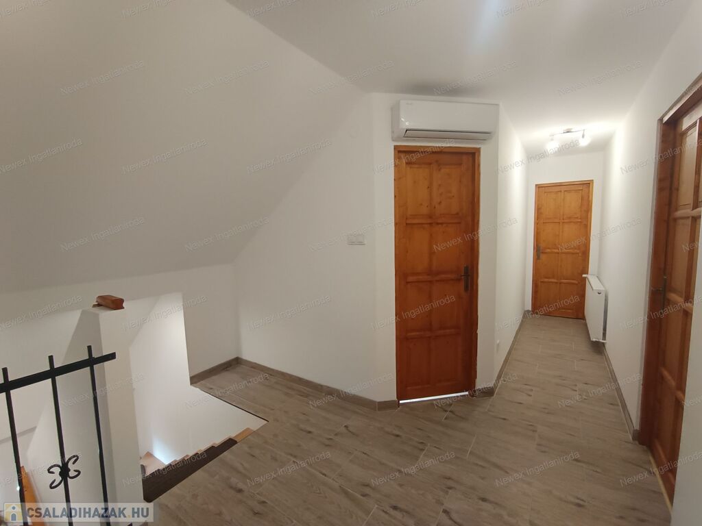 Felső szint: 2 hálószoba, fürdő + WC, közlekedő, tároló.