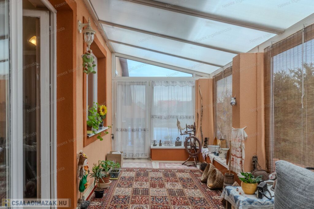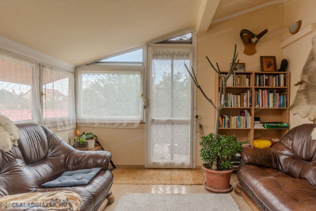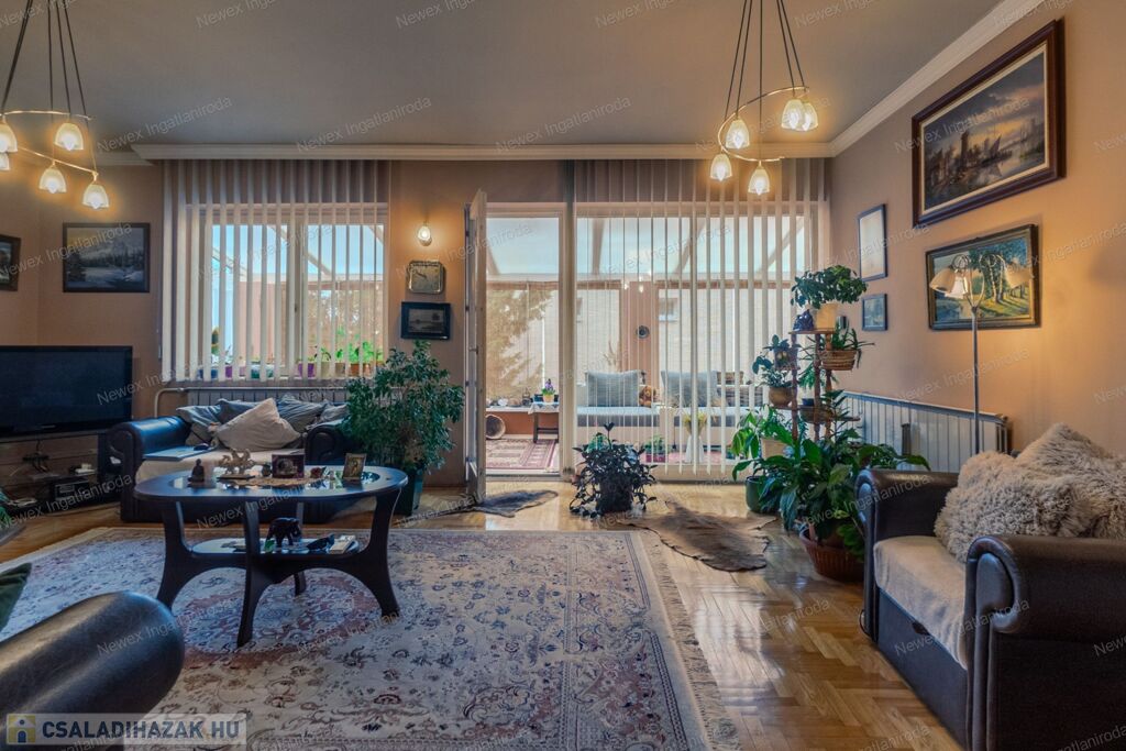 Tágas, fényárban úszó nappali hatalmas üvegfelületekkel, télikert kapcsolattal