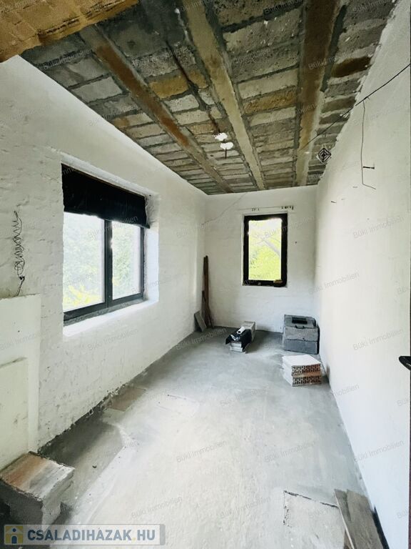 Az alsó szinten konyha, fürdőszoba, WC és két szoba található, a felső szinten pedig két tágas szoba kapott helyet, amelyek közül az egyik erkélyes, gyönyörű kilátással. Az ingatlan körülbelül 70%-os készültségi fokon áll, de minden szükséges anyag – a csempétől a fürdőkádig – rendelkezésre áll, így az új tulajdonos saját elképzelései szerint fejezheti be az otthont, anélkül, hogy bontani vagy újraépíteni kellene.