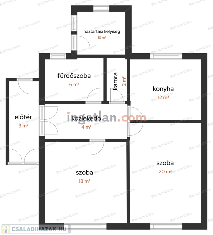 A belső elrendezés praktikus és otthonos. A szélfogóból az előtérbe érkezünk, ahonnan minden helyiség külön megközelíthető. A két szoba tágas és világos, a konyha étkezőasztal elhelyezésére is kényelmesen alkalmas, a kamra pedig hasznos tárolási lehetőséget nyújt. Az ingatlanhoz pince is tartozik, mely remekül használható tárolásra vagy hobbi célokra.