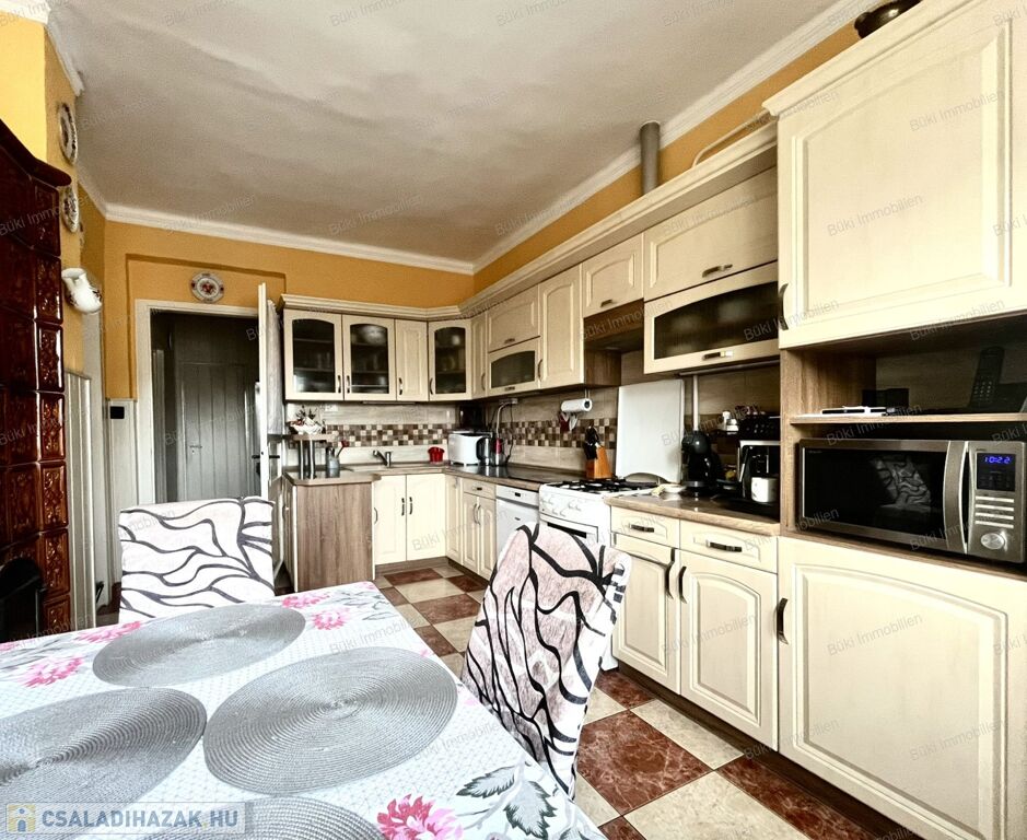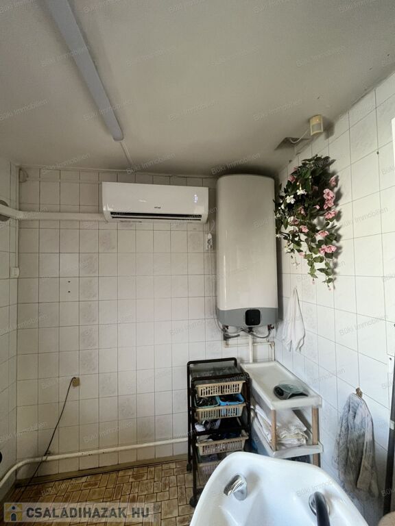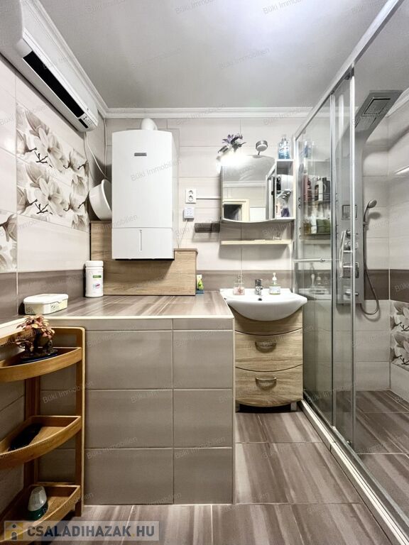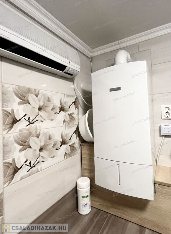 A műszaki tartalom meggyőző: a villamos- és vízhálózat felújított, három fázis bevezetve. A fűtésről egy öt éve beépített modern Bosch kondenzációs kazán gondoskodik, amelyet három split klíma és egy hangulatos cserépkályha egészít ki – utóbbi két helyiséget is képes befűteni, igazi otthonos meleget teremtve. A melegvizet mindkét épületben villanybojler biztosítja. A tetőre három éve egy 8 kW-os napelemrendszer került, amely még éveken át szaldó elszámolásban működik, így jelentős megtakarítást biztosít.