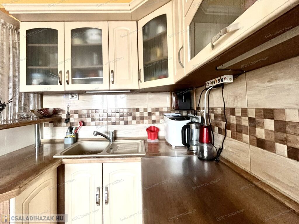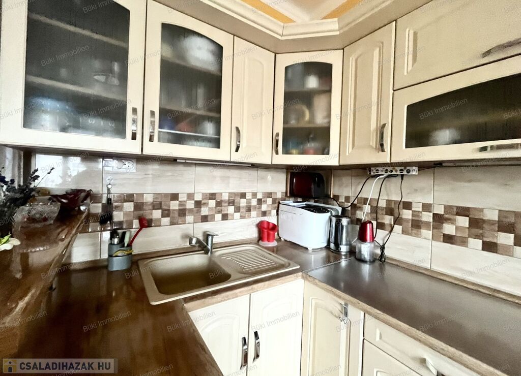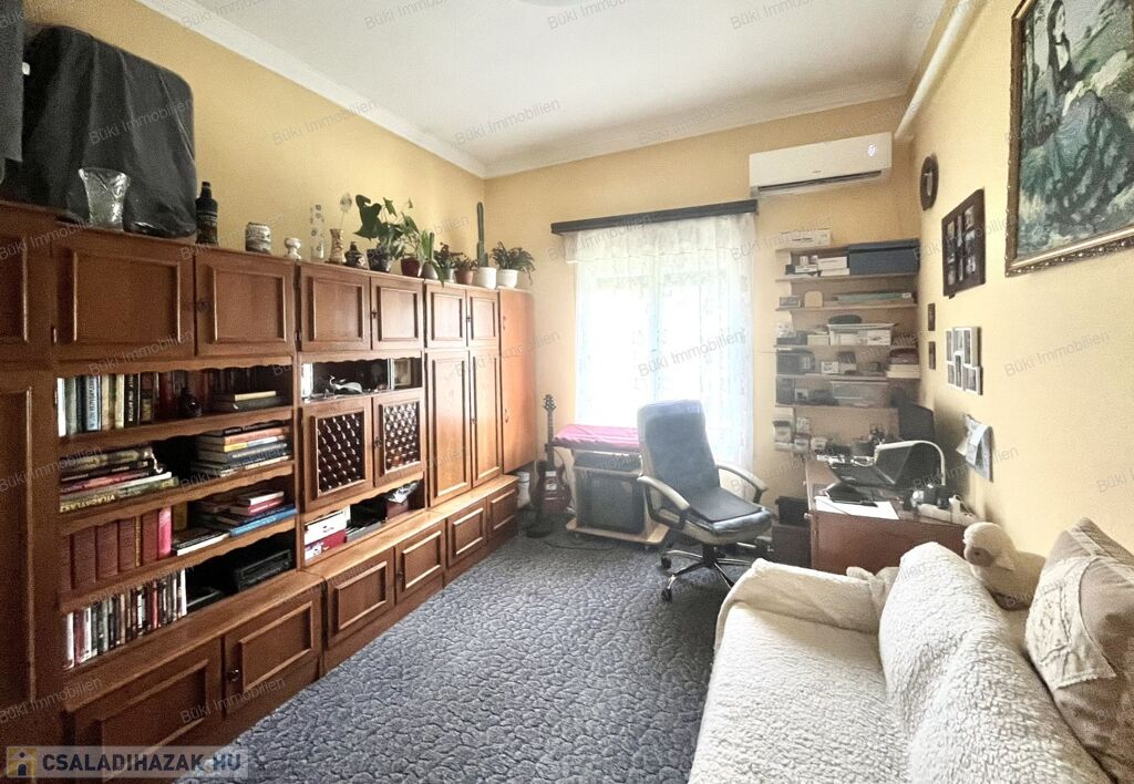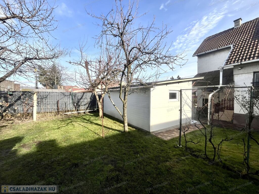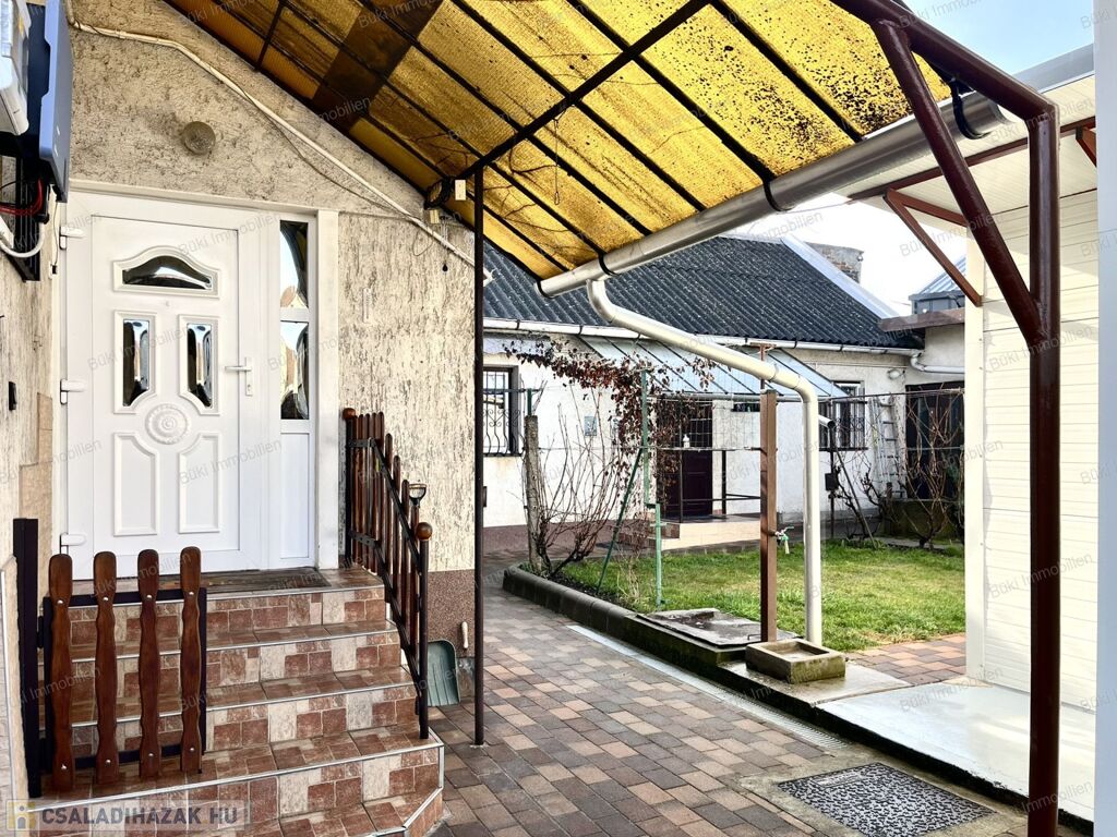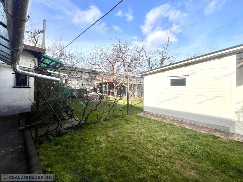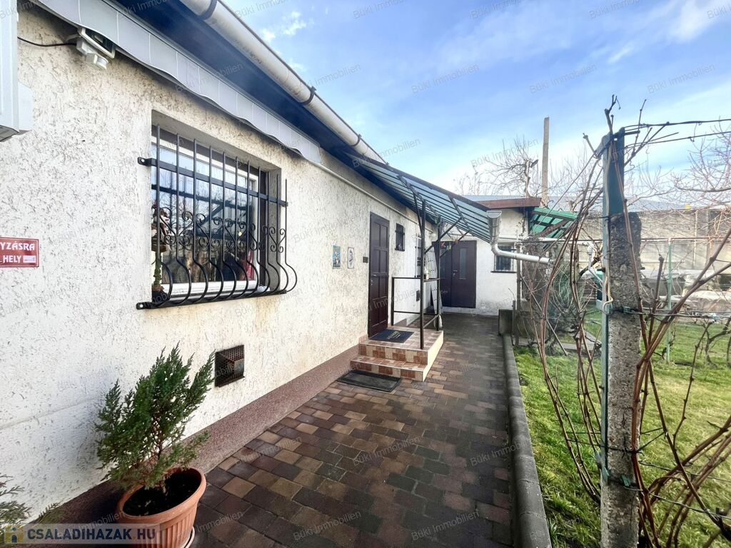Miskolcon, a közkedvelt Győri-kapuban, 463 m²-es, gondozott telken kínálok eladásra egy jó állapotú, háromszobás családi házat garázzsal és több melléképülettel. Az eredeti épület 1988-ban teljes körű átépítésen esett át, tégla és szilikát falazattal készült, a tető ekkor teljes cserét kapott cserépfedéssel, amely ma is kifogástalan állapotban van. A fa, hőszigetelt ablakok redőnnyel felszereltek, a bejárati ajtó műanyag.