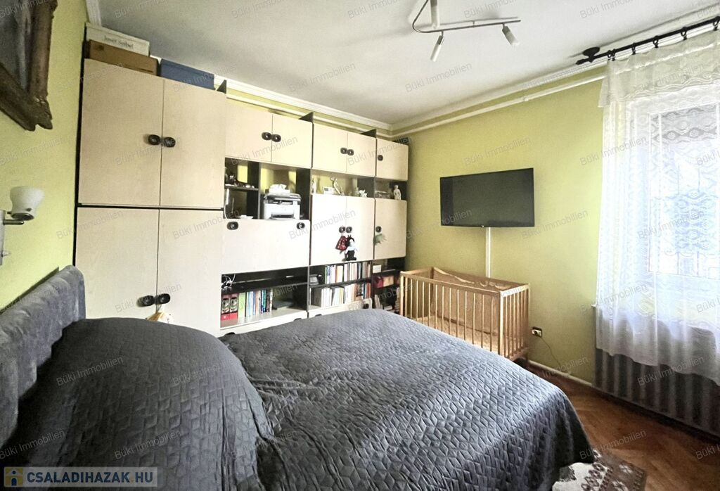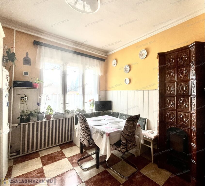 A ház elrendezése praktikus és élhető: a központi előtérből nyílnak a világos, külön bejáratú szobák, a tágas konyha, a kamra, valamint a megújult fürdőszoba. A konyha, az előszoba és a fürdő járólapos burkolatot kapott, a szobákban parketta, illetve padlószőnyeg található. A kelet–nyugati tájolásnak köszönhetően a ház egész nap világos: reggel a felkelő nap fénye, délután pedig a lemenő nap melege tölti meg élettel a tereket, ami nemcsak hangulatos, hanem energiatakarékossági szempontból is kedvező.