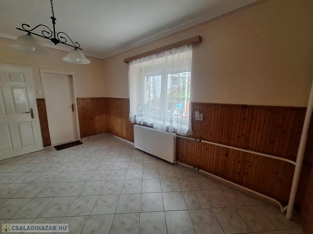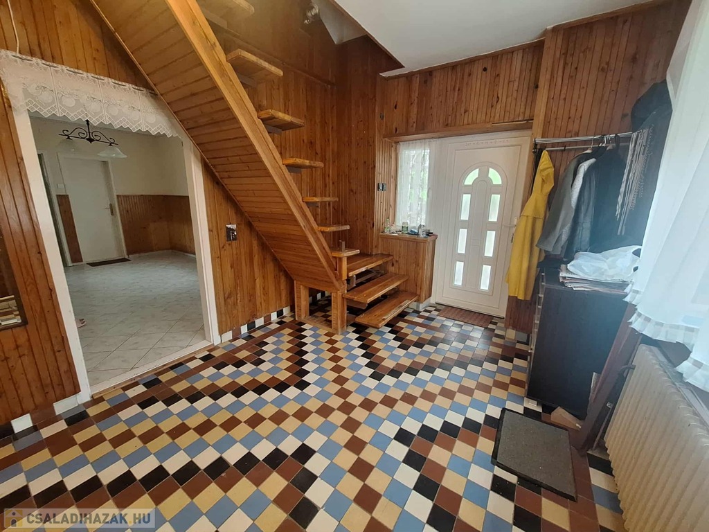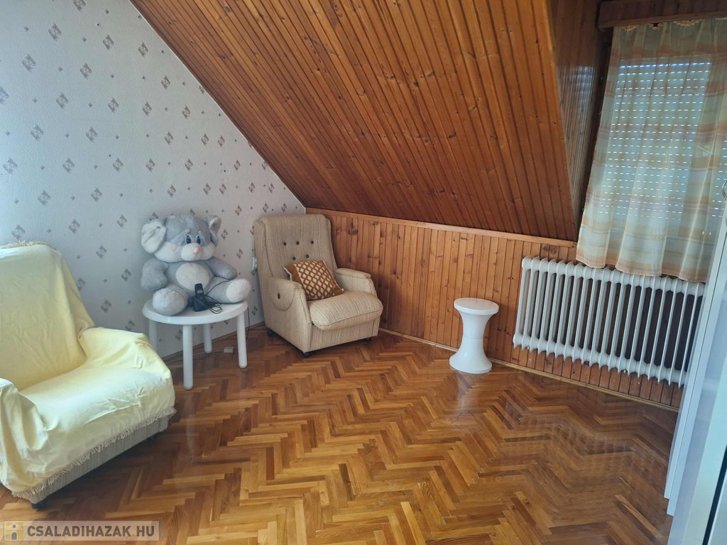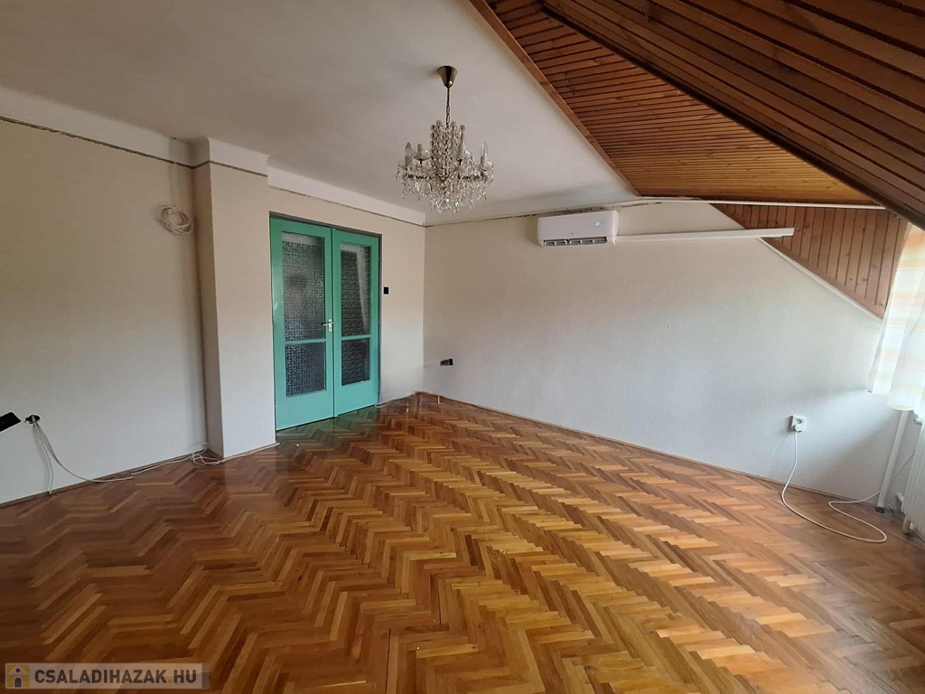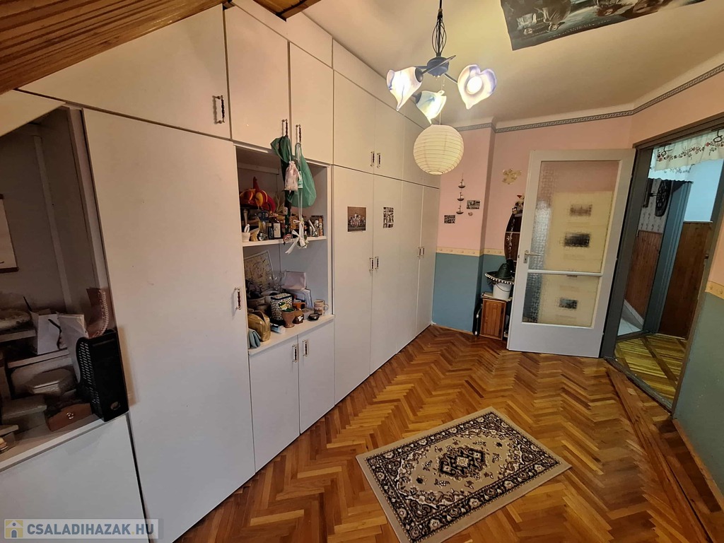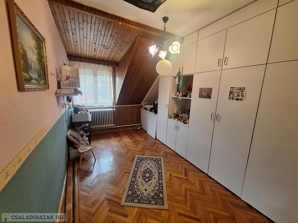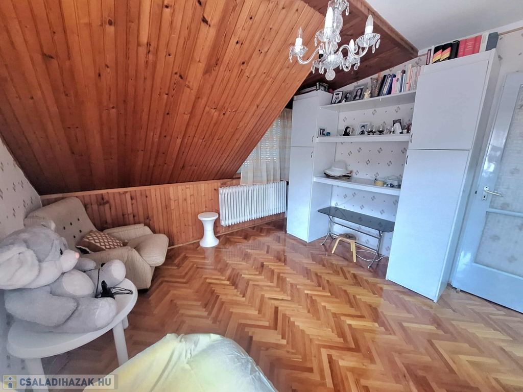 A felső szinten egy nagyszoba és három kisebb szoba kapott helyet, valamint fürdőszoba, konyha, spájz, közlekedő és egy különálló WC. Itt még a villanyvezetékek cseréje nem történt meg, de a vízvezetékek már újak, amit a fürdőszoba felújításakor cseréltek ki. A nyílászárók duplaüveges, hőszigetelt fa ablakok, ahonnan csodálatos kilátás nyílik a környező erdős részre. A panoráma fantasztikus!