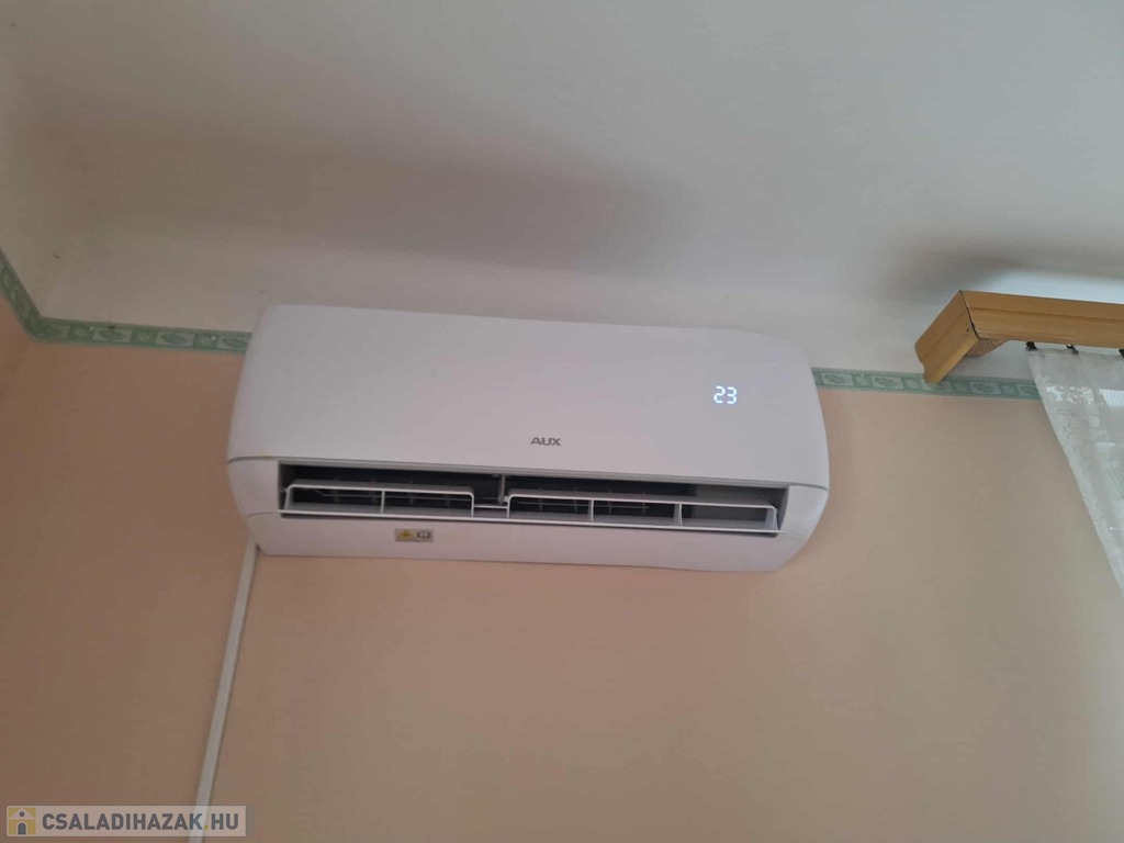 Az emeleten direkt ide készíttetett beépített szekrények teszik kényelmesebbé az életet. A kellemes hőmérsékletről szintén két klíma berendezés gondoskodik nyáron.