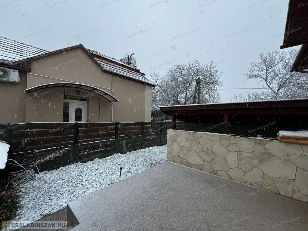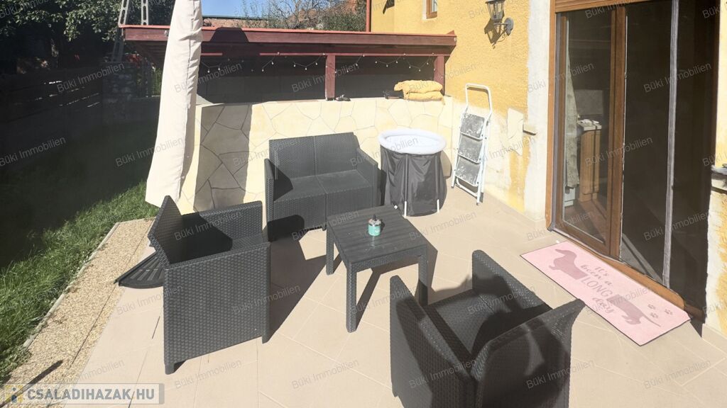A konyha praktikus kialakítású, beépített bútorzattal rendelkezik, közvetlen kapcsolattal a hangulatos terasz felé, amely a hátsó kerttel együtt kiváló helyszín a pihenésre vagy a családi, baráti együttlétekre. A kert fúrt kúttal ellátott, így az öntözés gazdaságosan megoldható.