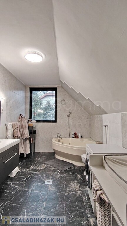 • Fűtés: A két szinten 2021-ben telepített kondenzációs gázkazán (radiátorokkal), az első emeleten kiegészítő látványkonvektorral.