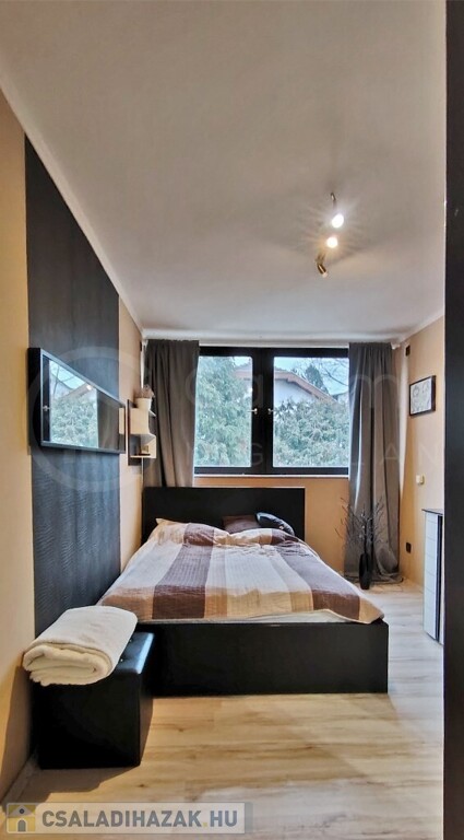 • Nyílászárók: Korszerű műanyag hőszigetelt ablakok rovarhálóval, biztonsági bejárati ajtó, nagy méretű teraszajtók (az emeleten helytakarékos tolóajtó).