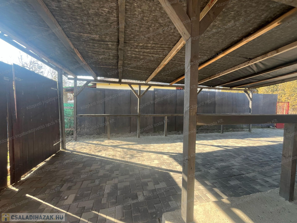 Az ingatlan külterületi, művelés alól kivont, a telek területe 725 m2, a rajta található ház részben felújított, 53 m2-es alapterületű, tégla falazatú. Helyet kapott benne egy nagy amerikai konyha, egy nagyobb és egy kisebb szoba tárolóval, fürdőszoba, WC. A tárolóból kialakítható gardrób, hobby, tanuló vagy dolgozószoba. A szobák laminált parkettával, a többi helyiség járólappal burkolt. Az otthon melegéről egy fatüzelésű vízteres kandalló gondoskodik, a hőleadás radiátorokon keresztül történik.