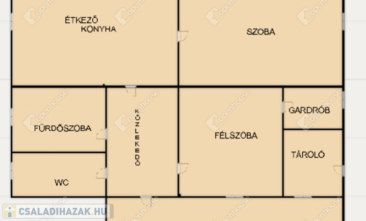 - aljzatburkolat: szobái laminált parkettásak, a többi helyiség hidegburkolattal rendelkezik