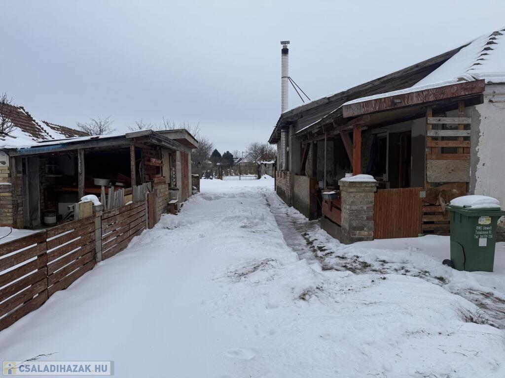 A telek folytatásában tégla építésű állattartó épületek, valamint egy különálló, lapostetős garázs és tároló található – mind felújítandó, de használható állapotban.