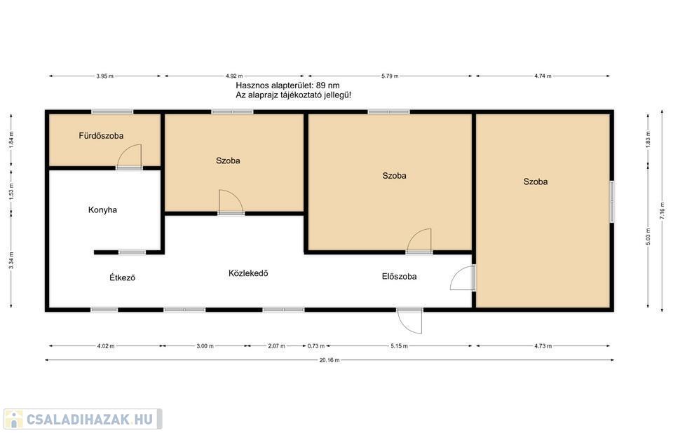 A 89 m² hasznos alapterületű lakóház utcafronti része 1967-ben épült vegyes (vályog és tégla) szerkezettel, majd 2005-ben téglából bővítették. Elrendezése praktikus: előtér, 3 szoba, konyha–étkező, fürdőszoba WC-vel. Az épület masszív szerkezetű, azonban teljes körű felújításra és korszerűsítésre szorul, így új tulajdonosa valóban a saját ízlésére formálhatja.