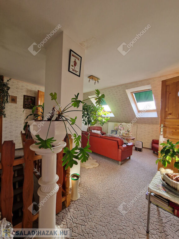 - tetőtér: közlekedőből kialakított stabil szerkezetű lépcsőn közelíthető meg a társalgó, fürdőszoba, két külön nyíló kényelmes méretű tetőtéri szoba melyek egyikéből utcafront felé kialakított erkély kapott teret