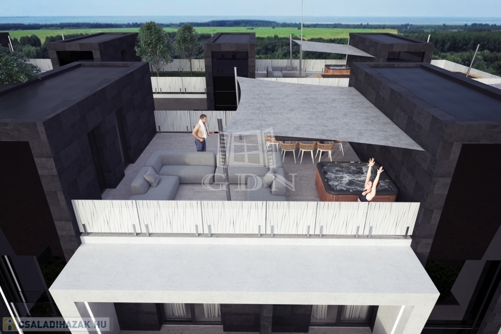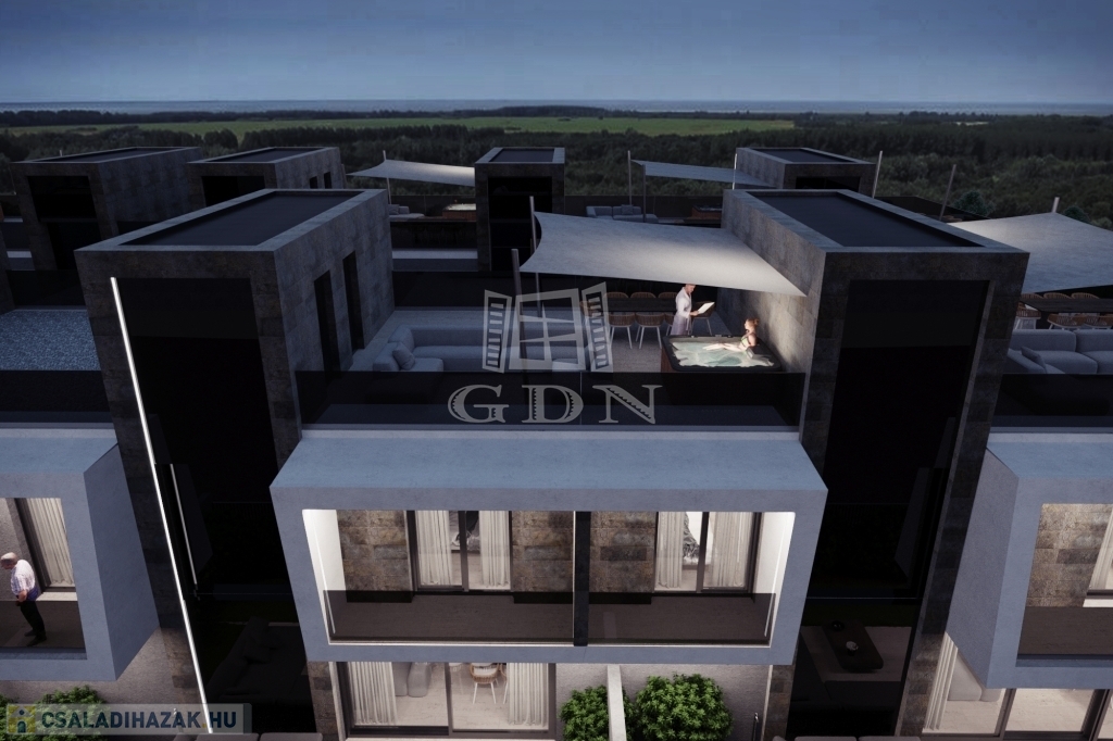 A projektben 2 tömbből álló 5 illetve 4 lakásos sorházat valósítunk meg. Földszinttel, emelettel és egy exkluzív tetőterasszal, ezen felül az exkluzivitást emelve a teraszok és erkélyek rozsdamentes vonalmenti üvegkorlátot kapnak. A lakáshoz tartozik egy fedett gépkocsi beálló. Egyedi igény alapján vásárolható a lakásokhoz külső gépkocsibeálló. Mindegyik lakás saját lépcsőházzal rendelkezik, ami biztosítja a feljutást egészen a tetőteraszig.