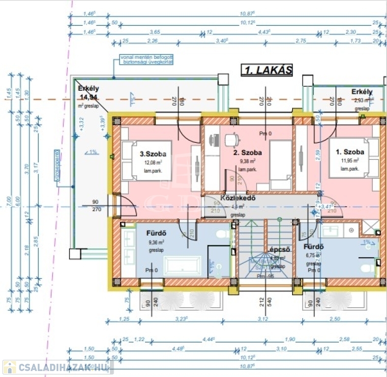 Fűtőtest: Az ingatlanokban padlófűtés és oldalfali fain coil rendszer készül.