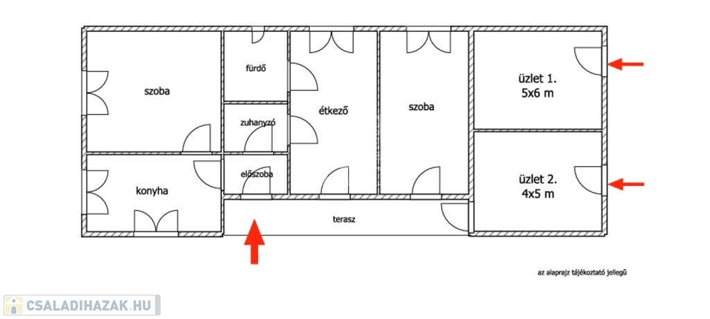 - ház alkalmas 5 szoba kialakítására is, avagy az étkezőt egybevonva az egyik szobával, és az üzleteket szobává alakítva, egy modern 3 hálószoba, plusz nappalis elosztast is ki lehet alakítani!
