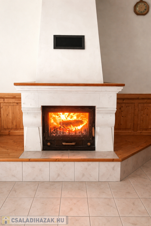 Fűtés: A fűtésről az alsó szinten kandalló gondoskodik, míg a felső szinten a nappaliban egy cserépkályha, a szobákban pedig dupla kéményes kandallók biztosítják a meleget.