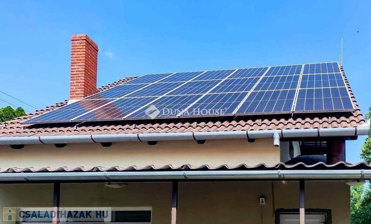 Az ingatlan egyik kiemelkedő előnye az 5,75 kW teljesítményű napelemrendszer, amely jelentősen csökkenti a rezsiköltségeket, miközben környezetbarát megoldást kínál.