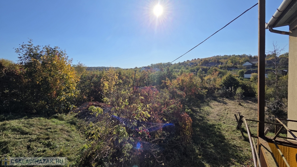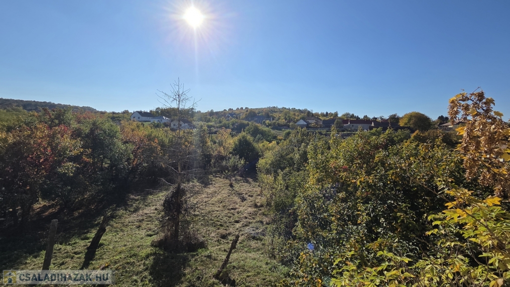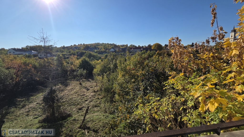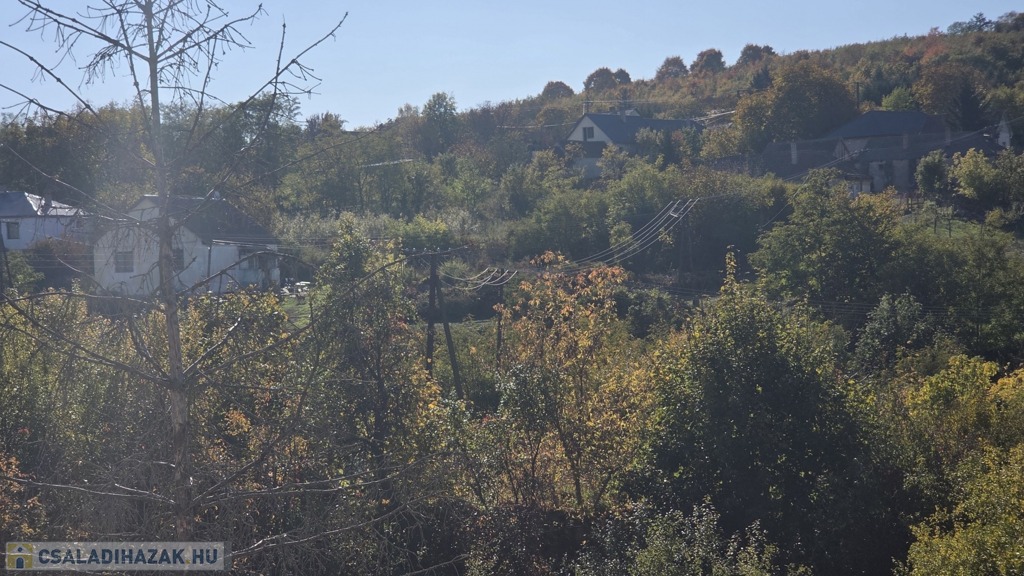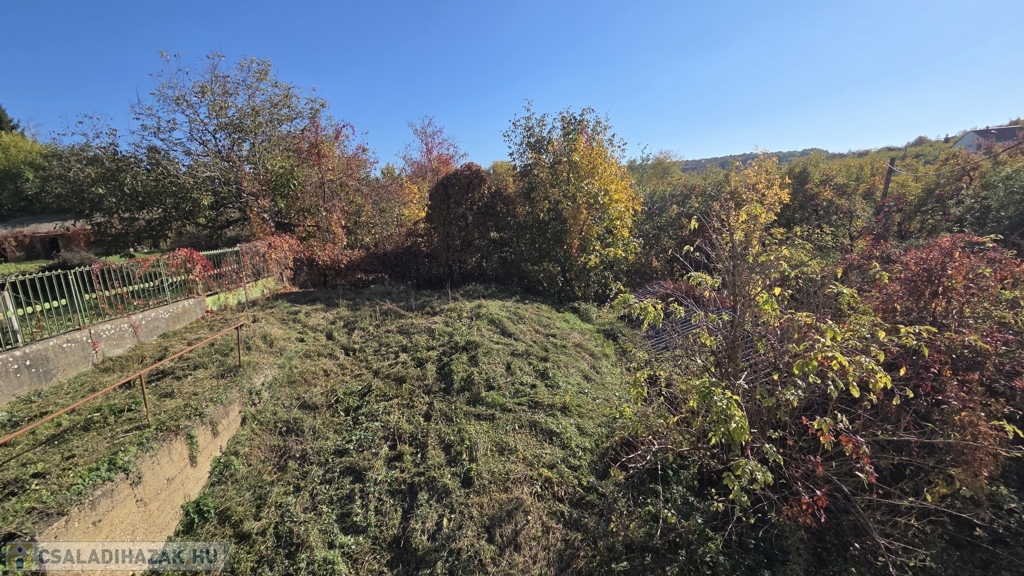 A ház egy 1200 m²-es, lejtős telken fekszik, ahol a kertbe és a garázsba lépcső vezet – ez nem hiba, hanem karakter. A telek ideális kertészkedéshez, pihenéshez vagy akár további fejlesztéshez.