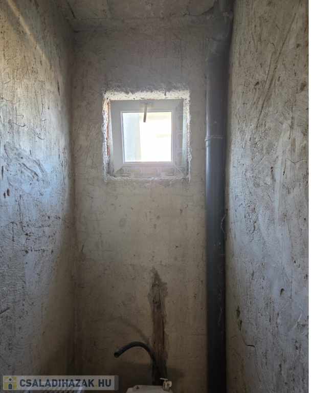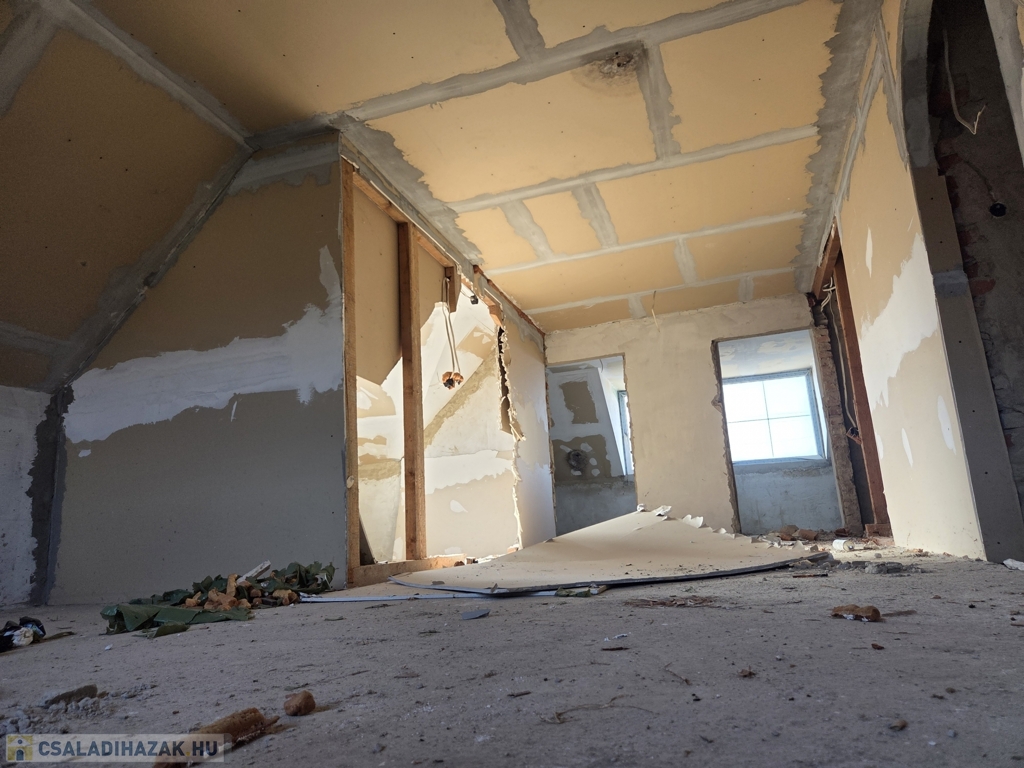 A felső szint kb. 64 m², külön lépcsőházon keresztül közelíthető meg, jelenleg szerkezetkész