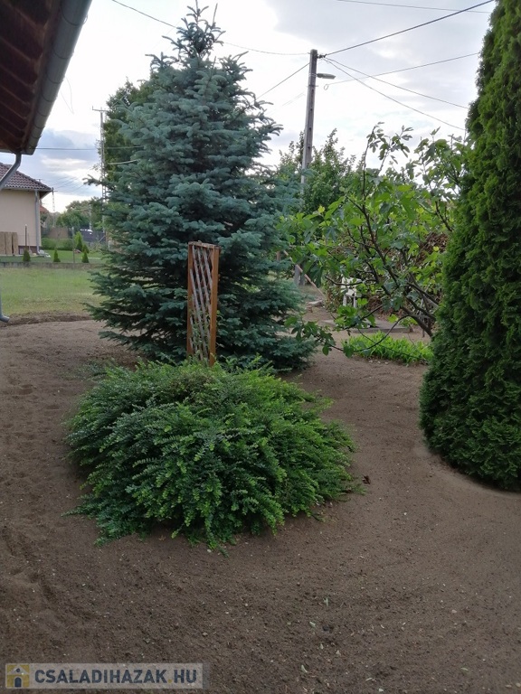 Minden közmű be van kötve: gáz, víz, villany, csatorna, valamint a locsoláshoz saját fúrt is van.