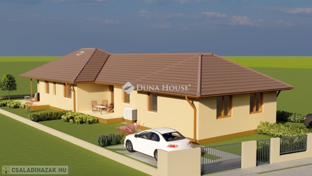 Kialakítása: 3 szoba, fürdő, külön wc, előtér, tároló, előtér, nappali+étkező konyha, 10 m2 nyitott és fedett terasz.