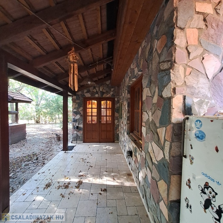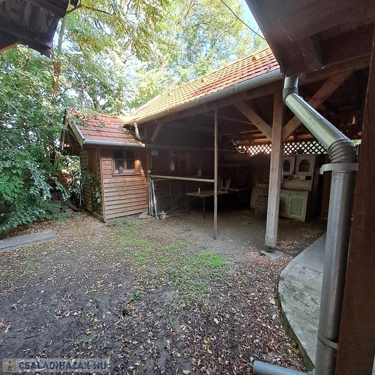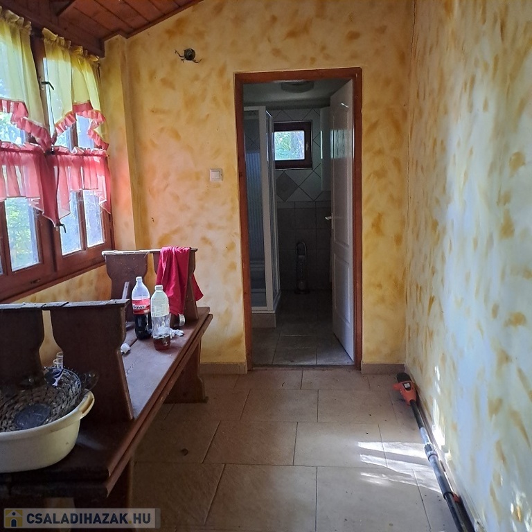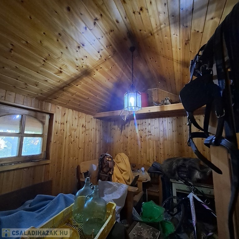A telken található egy faház, mely kb. 14 m2, belül teljesen lambériázott, akár szauna is kialakítható benne, ezen kívül egy fával fűthető DÉZSA FÜRDŐ.