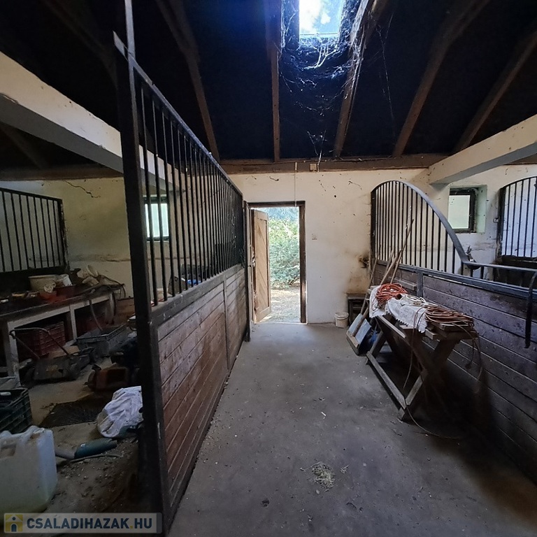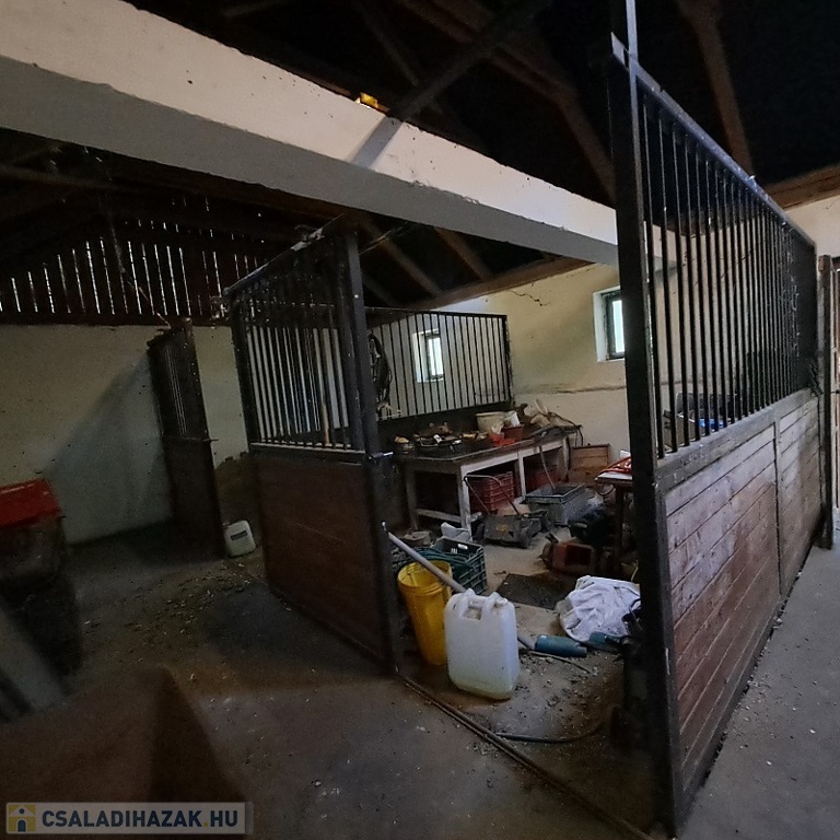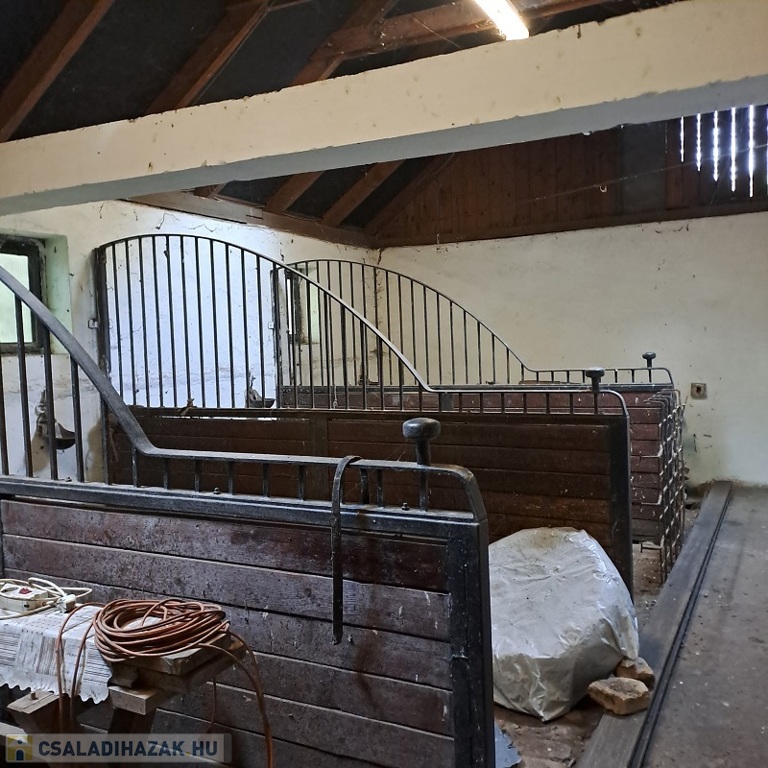 A ház a ’70-es évek elején épült beton alapra téglából (40 cm-es falak), 2005-ben teljes körű felújításon esett át (nyílászárók fa hőszigeteltre lettek cserélve, villanyvezetékek át lettek húzva, burkolatokat újra cserélték….), ekkor lett a kb. 90 m2-es istálló is felépítve, melyben 3 állás és 2 box került kialakításra Az épület egyik végében 1 szoba található, a másik végében 1 ól, ezenkívül még szénatároló, galamb ól, tyúkól is kialakításra került!