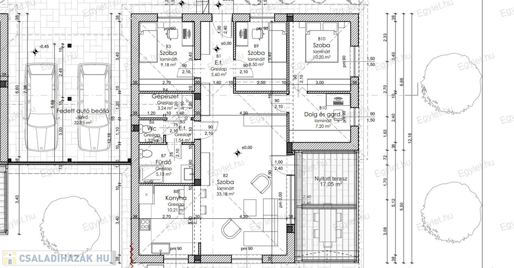 A kulcsra kész ár tartalmazza a redőnyöket, három rétegű nyílászárókat, riasztó előkészítést, kaputelefon és motoros kapu kiépítést.