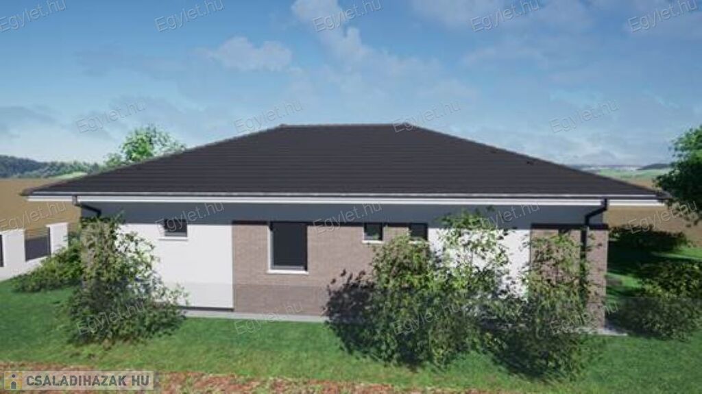 A kulcsra kész ár tartalmazza a redőnyöket, három rétegű nyílászárókat, riasztó előkészítést, kaputelefon és motoros kapu kiépítést.