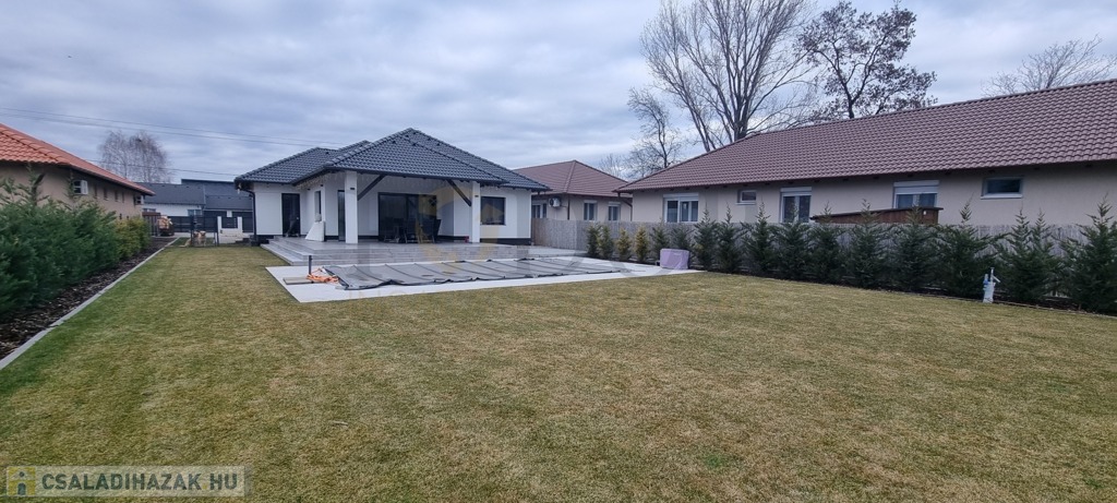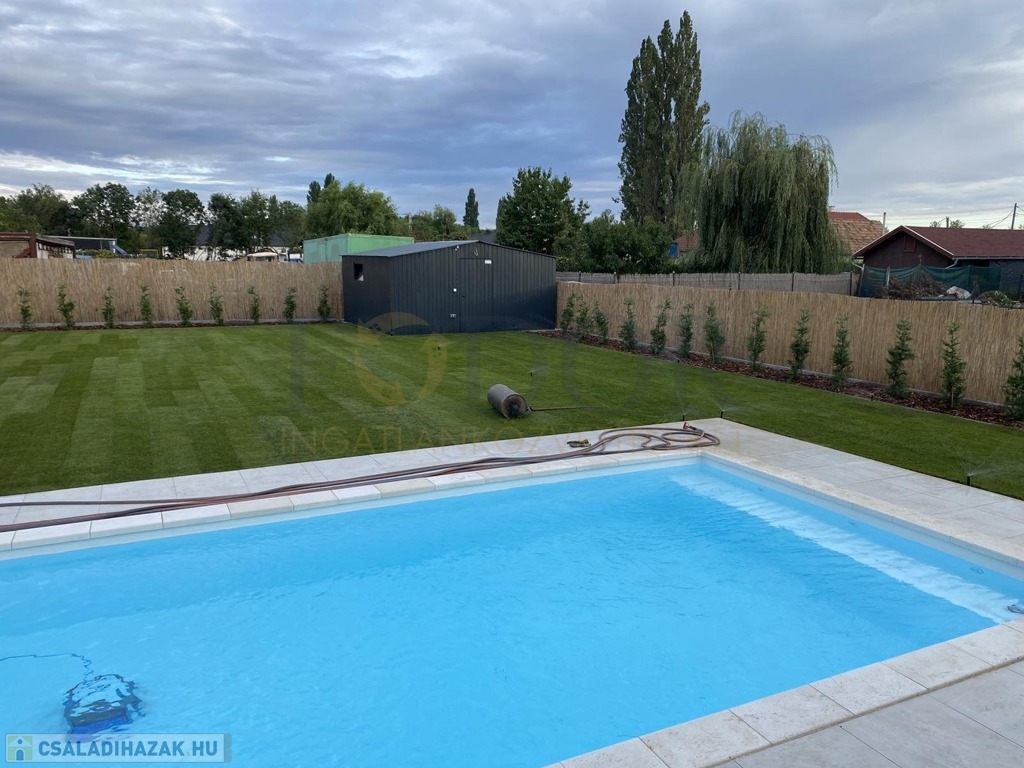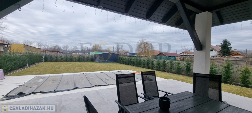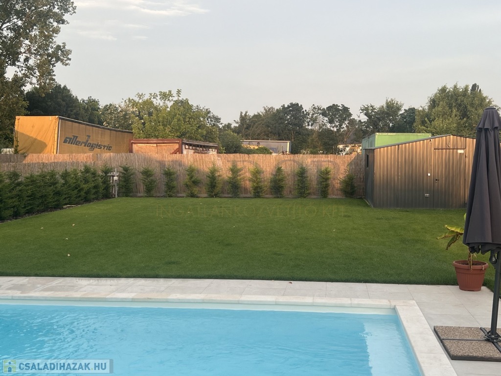 A 1063 m²-es, parkosított kert valódi édenkert, ahol automata öntözőrendszer gondoskodik a gyönyörű zöldellő pázsitról és növényekről. Akár egy csésze kávéval a teraszon, akár a medence partján pihenve – minden perc olyan, mintha nyaralna.