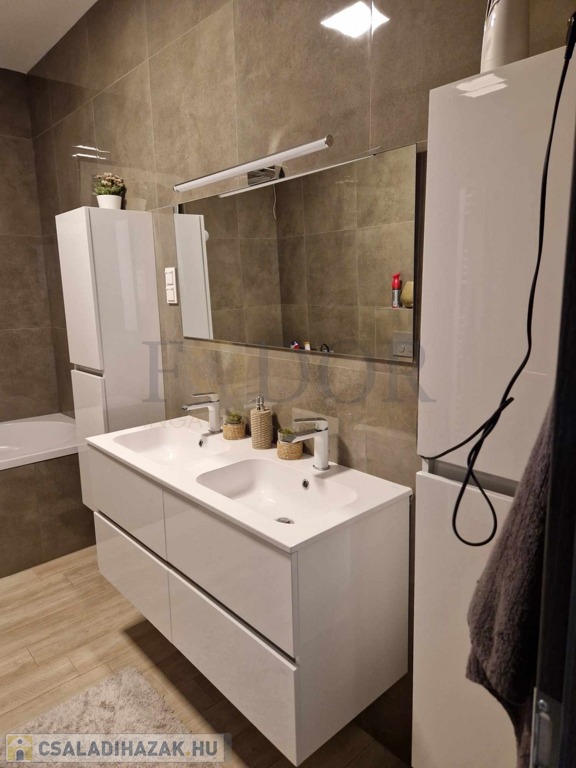 • Két fürdőszoba prémium szaniterekkel: Elegancia, kényelem és praktikum egy helyen – a törölközőszárítós radiátorokkal még a hűvös reggeleken is kellemes az indulás.