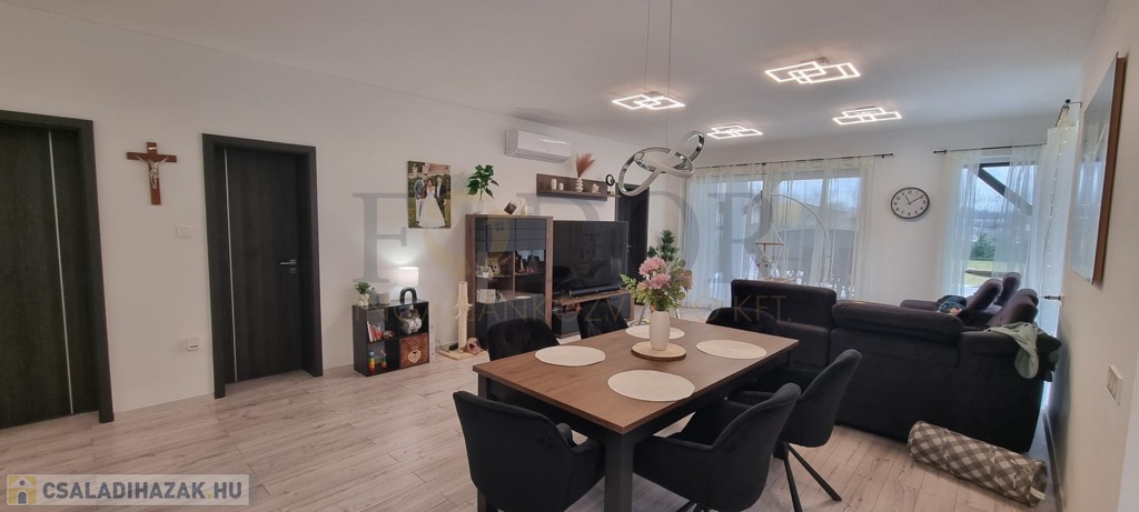 Képzelje el, hogy egy olyan otthonban él, amely nemcsak a legmodernebb technológiával, hanem kifinomult stílussal és páratlan kényelemmel is elkápráztatja Önt. Ez az újszerű, 2023-ban épült, 260 m²-es prémium ingatlan Monoron, egy csendes utcában található, ahol a nyugalom és a luxus kéz a kézben jár. Az épület 30-as falazatból épült, 15 cm vastag szigeteléssel, amely a kiváló energiahatékonyságról gondoskodik, így otthona minden évszakban kényelmes és gazdaságos lesz.