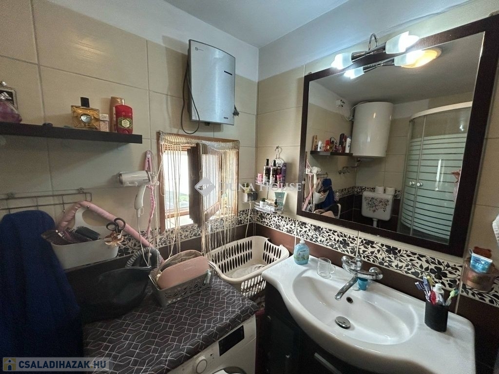Meleg vizet villanybojler szolgáltatja. Kandalló 4 éves a klíma még garanciális. Az elmúlt 5 évben felújításon esett át: új villany év vízvezeték csere, új burkolatok.