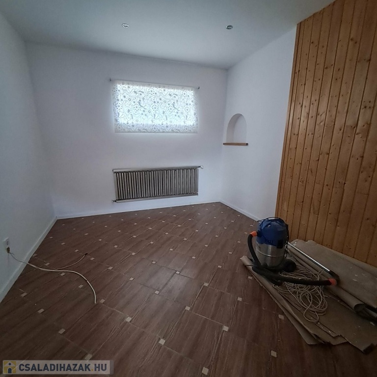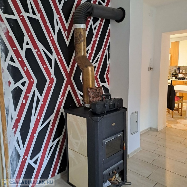 Fűtése egy rendszerről, kombi gáz cirkóval és vízteres kandallóval üzemeltethető, mely a 2. lakásban van.