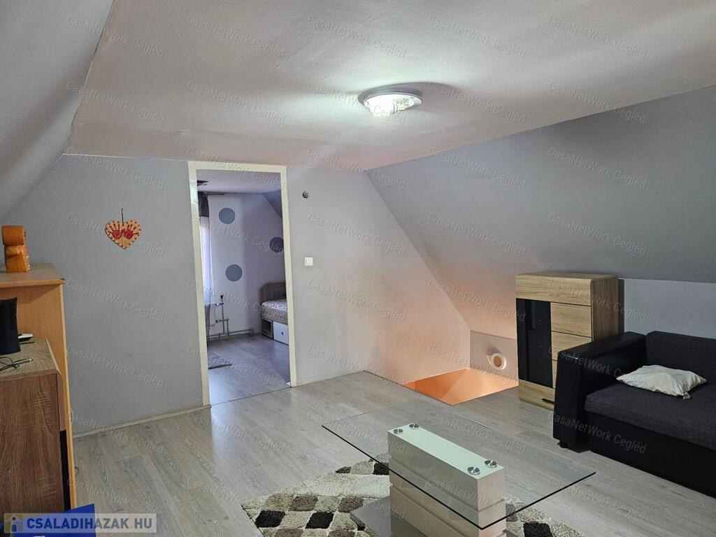 - Az ingatlan alsó szintjén található egy nagy fürdőszoba, háló szoba, egy nagyon jól elrendezett nappali-étkező-konyha, külön wc és a lépcsőház. Tetőtérben kialakításra került egy nappali, melyből két különálló szoba nyílik. Az egyik szobából, nyílik egy harmadik szoba, melynek felújítását már az új tulajdonos saját ízlése szerint alakíthat. A bejárat, egy nagy fedett teraszon keresztül közelíthető meg, mely a melegebb napokon kellemes hűvös pihenést biztosít.