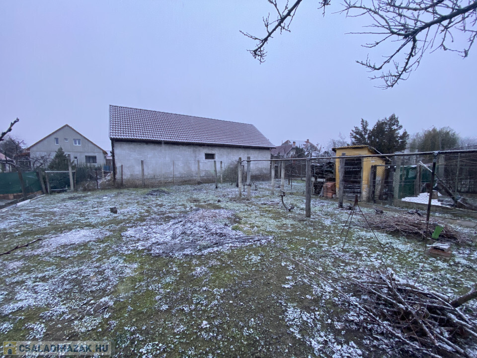 Az udvarban garázs és mögötte is egy különálló tároló épületke van még elhelyezve.