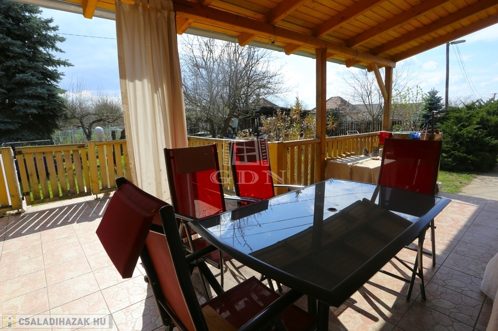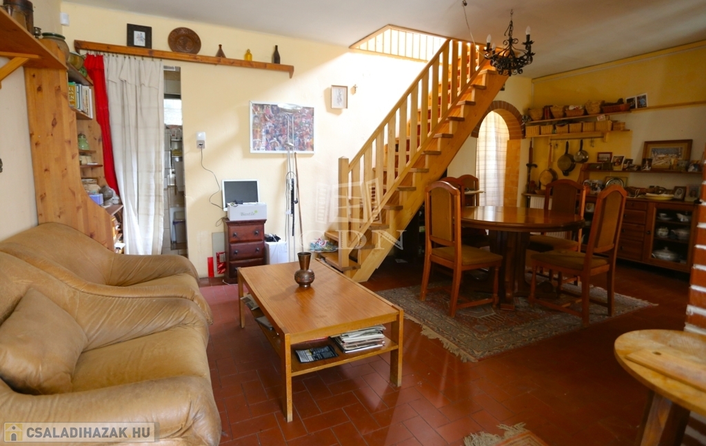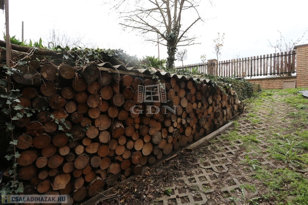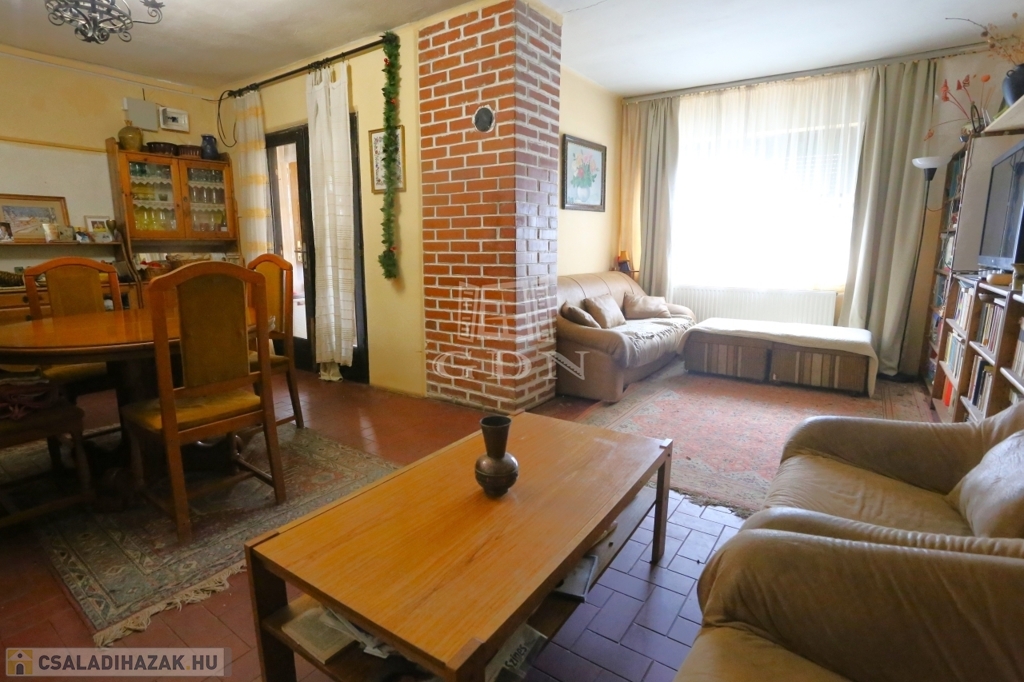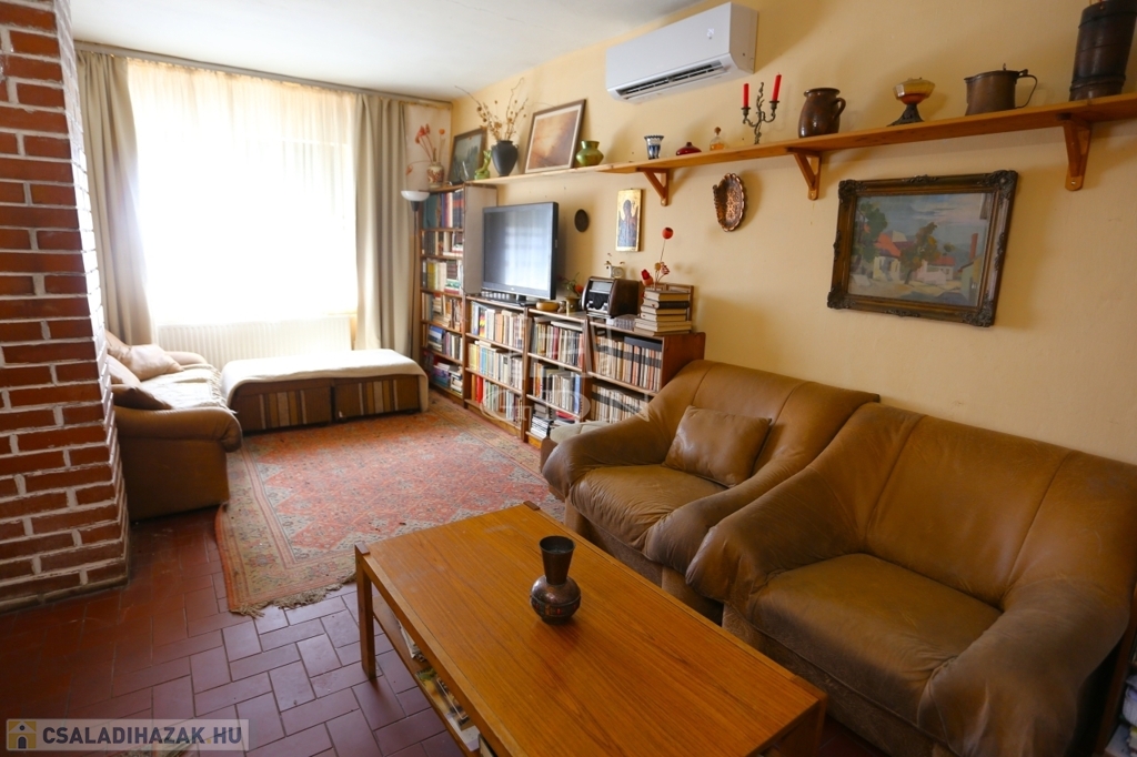 A település központjától 6 perc távolságra található a hirdetésben kínált, 1728 m²-es telken álló önálló családi ház borospincével.