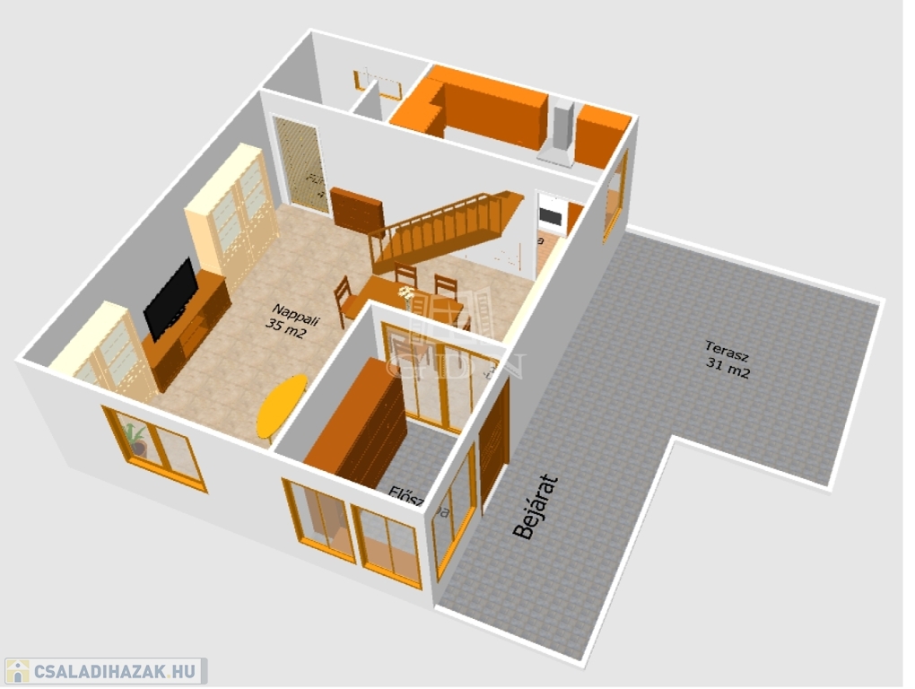 - fűtés: elsődleges faelgázosító ATMOS kazán, másodlagos inverteres (hűtő-fűtő) klíma.