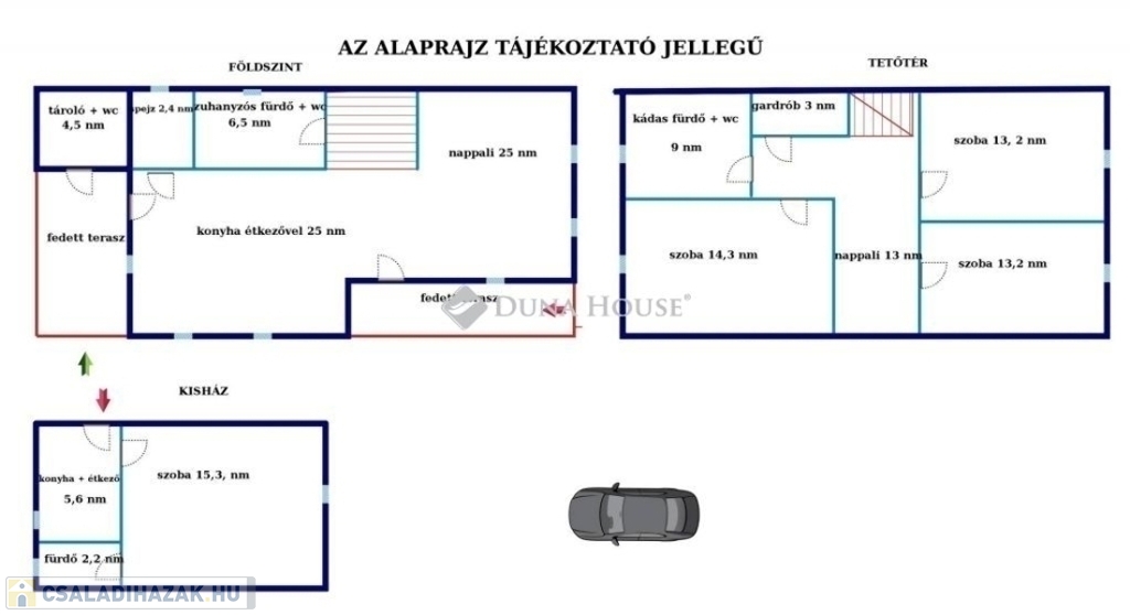 Ez a lakrész külön bejáratú, ideális két generáció együttélésére, vagy akár kiadásra is.