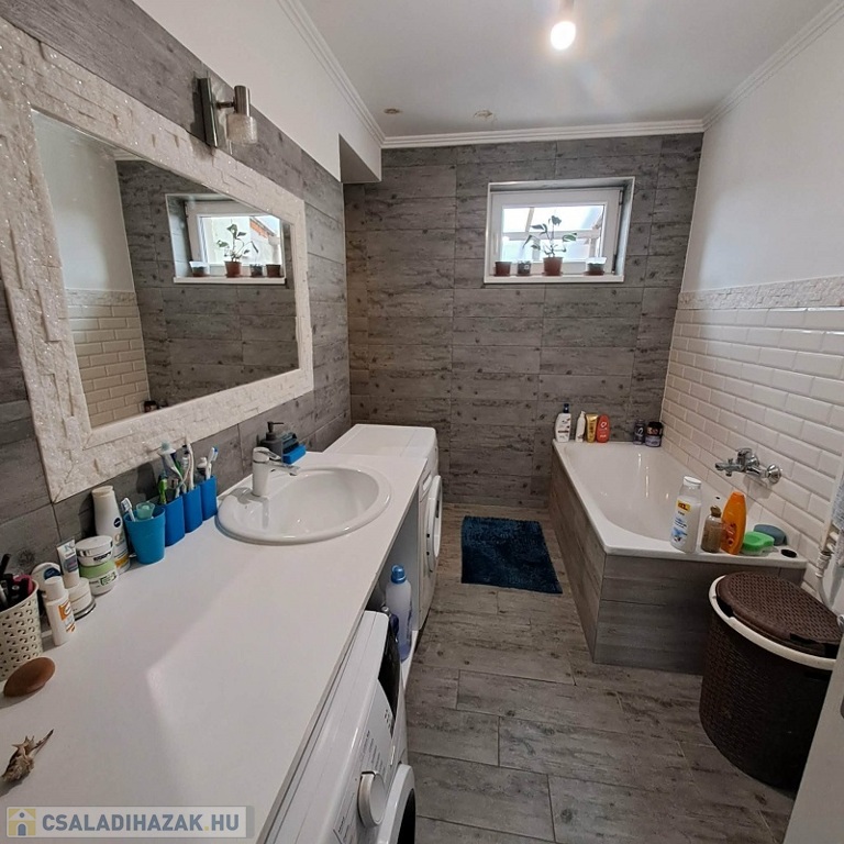 A ház a ’80-as években épült beton alapra téglából, 2019-től folyamatos felújításon esett át, (villanyvezetékek, 5 cm-es aljzatbeton szigetelés, 25 cm üveggyapot + 7 cm perlitbeton födémszigetelés, burkolatokat – szerelvényeket cseréltek, a nyílászárókat 2 rétegű műagyagra cserélték). Elkezdték a ház külső szigetelését 10 cm-es hungarocellel, ezt még az eladó be fogja fejezni.