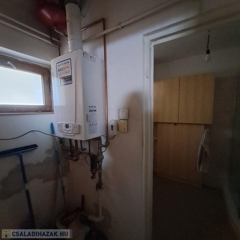 Az ingatlan fűtése többféleképpen működtethető: gáz kombi cirkó (a két nappaliban padlófűtéssel), 2 cserépkályha, 2 inverteres klíma, valamint a melegvizet villanybojlerrel is lehet készíteni.