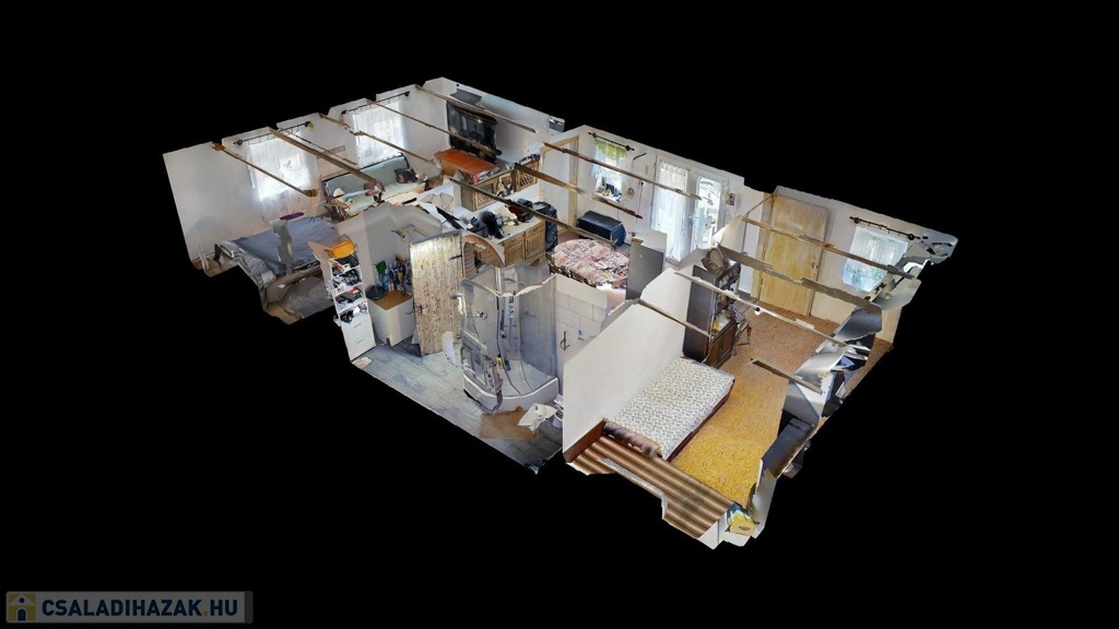 A ház alaprajzáról, a helyiségek méreteiről a mellékelt virtuális túra keretein belül tájékozódhat, megtekintés előtt érdemes bejárni.
